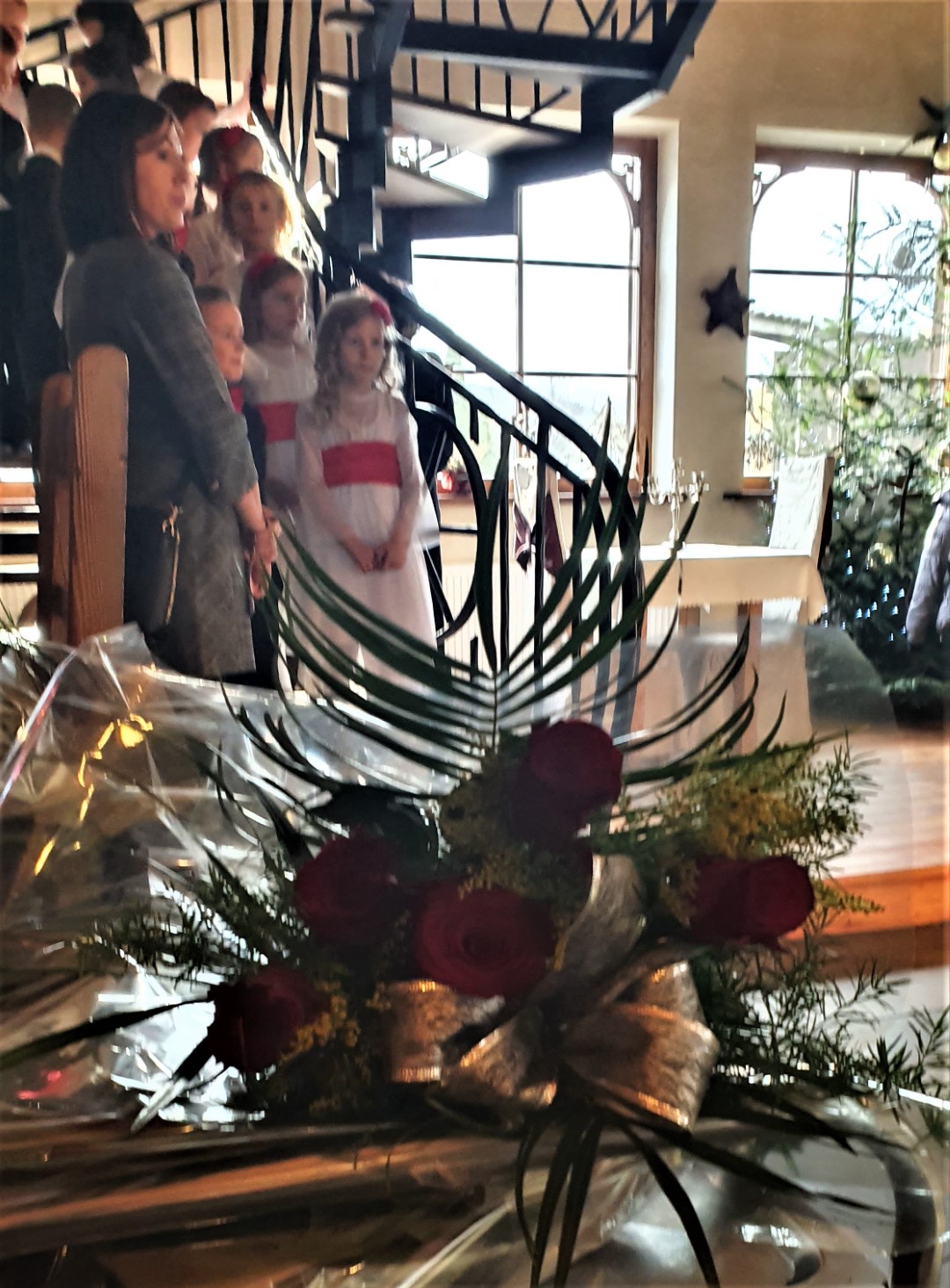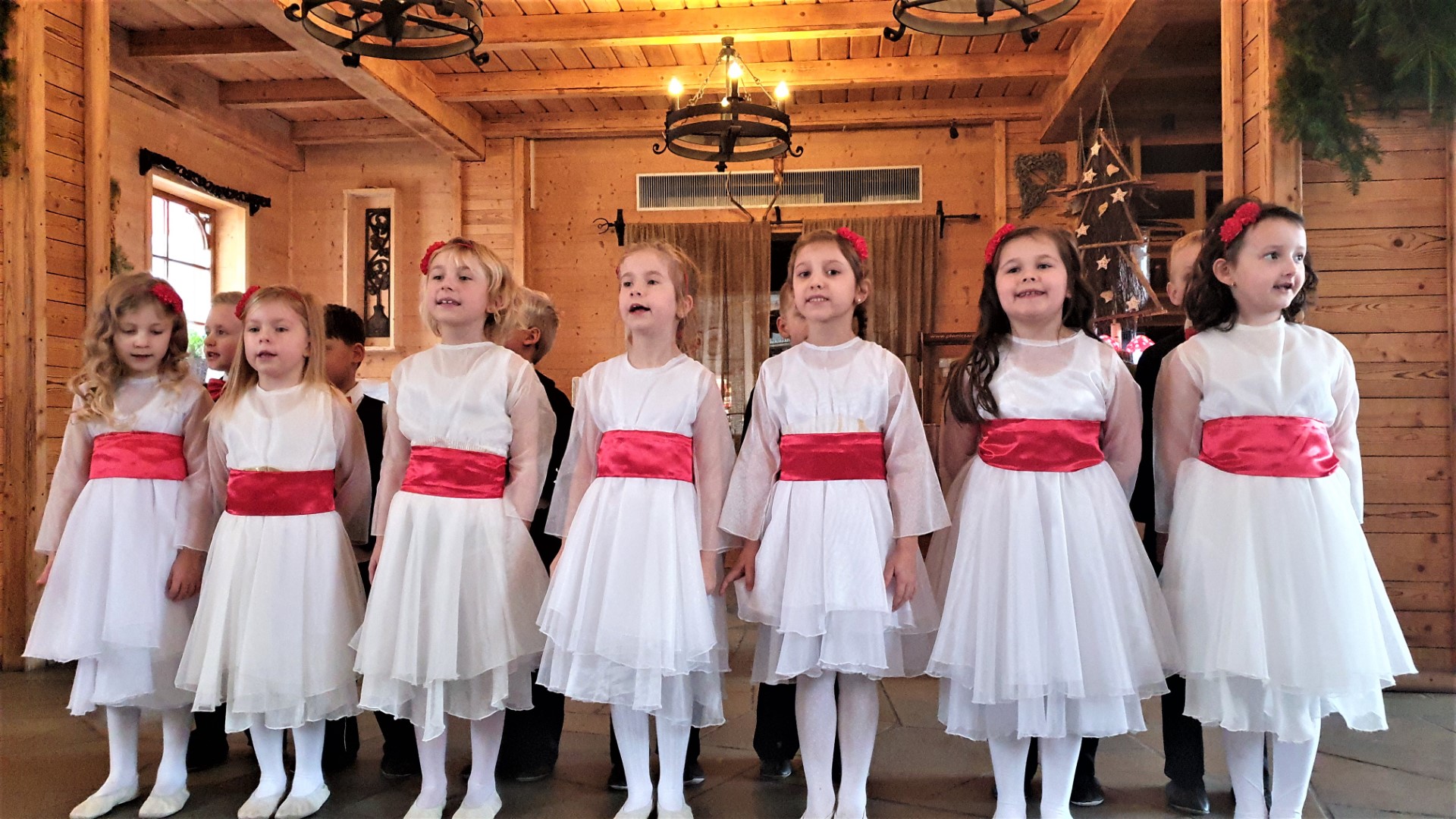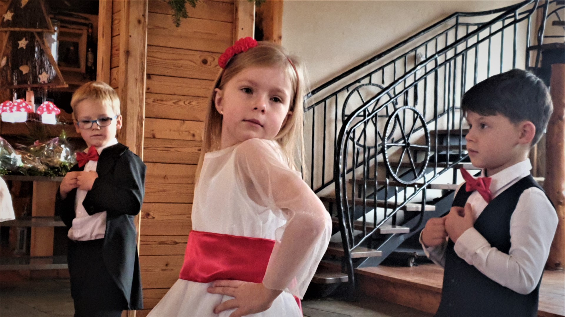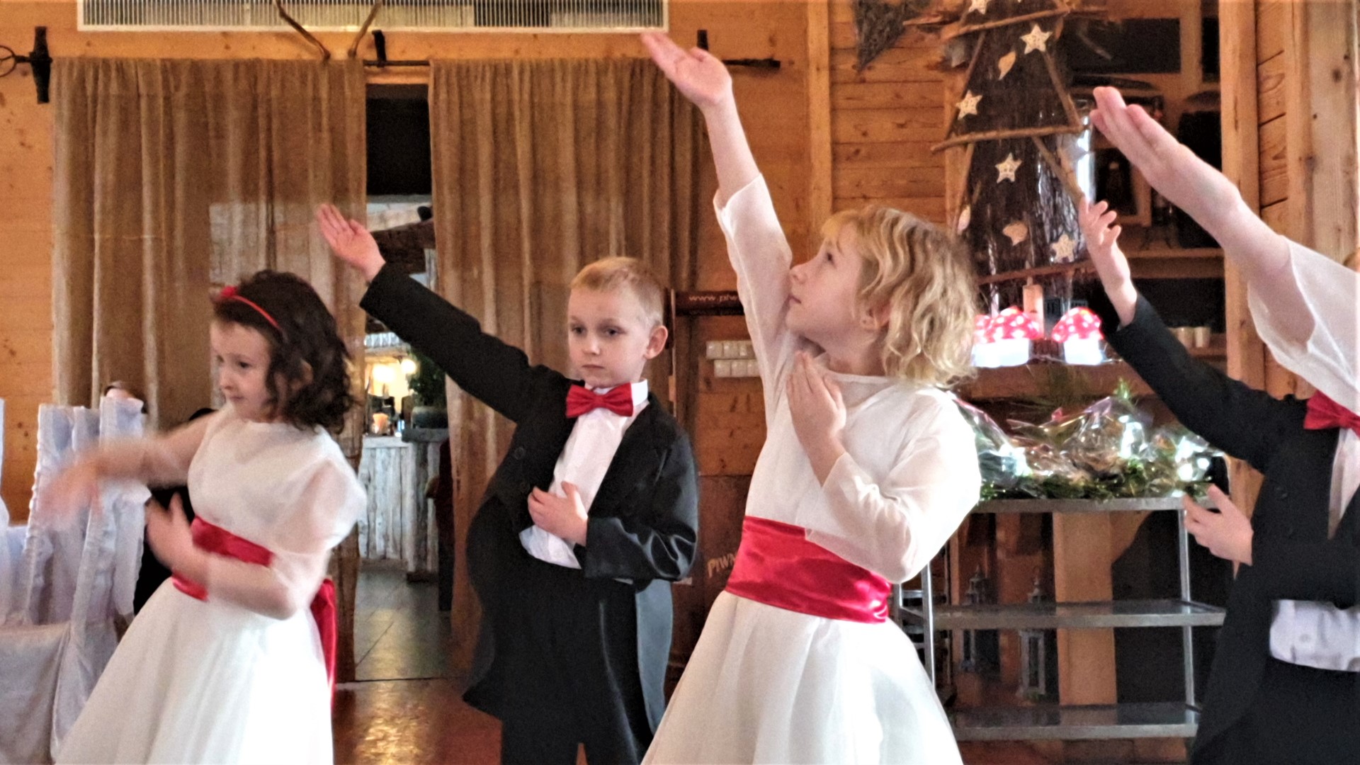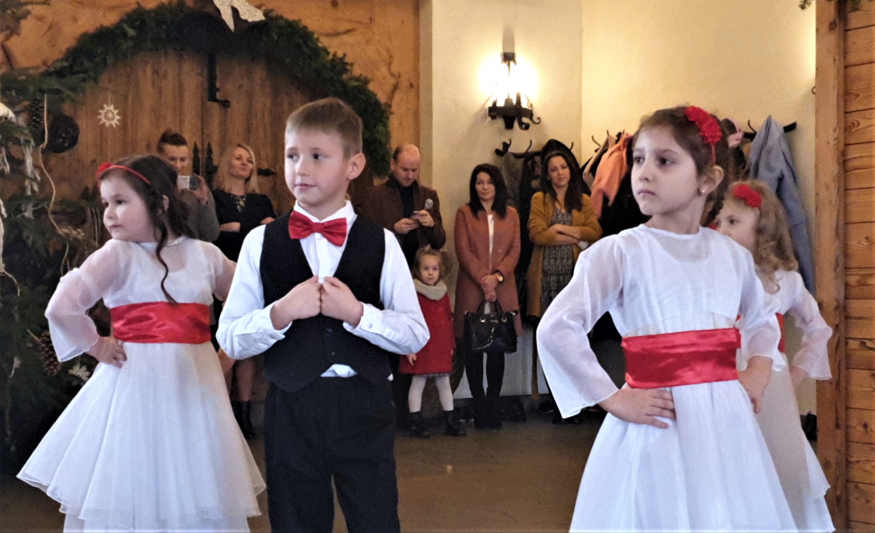 Zanim to nastąpiło dla wszystkich gości wystąpił zespół przedszkolaków z Przedszkola Samorządowego w Tymbarku. Młodzi artyści wspaniale wykonali program artystyczny (piosenki, taniec), w którym oczywiście nie zabrakło życzeń dla Jubilatów, a na zakończenie zaśpiewali „Życzymy, życzymy” (do śpiewu włączyli się zgromadzeni goście).