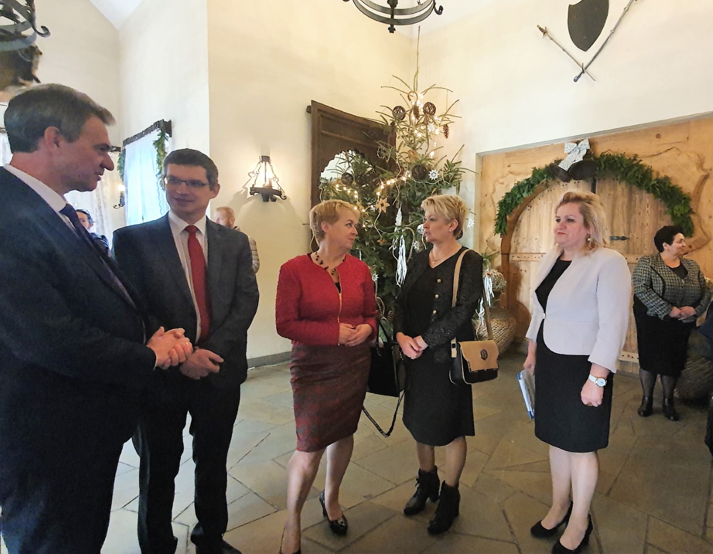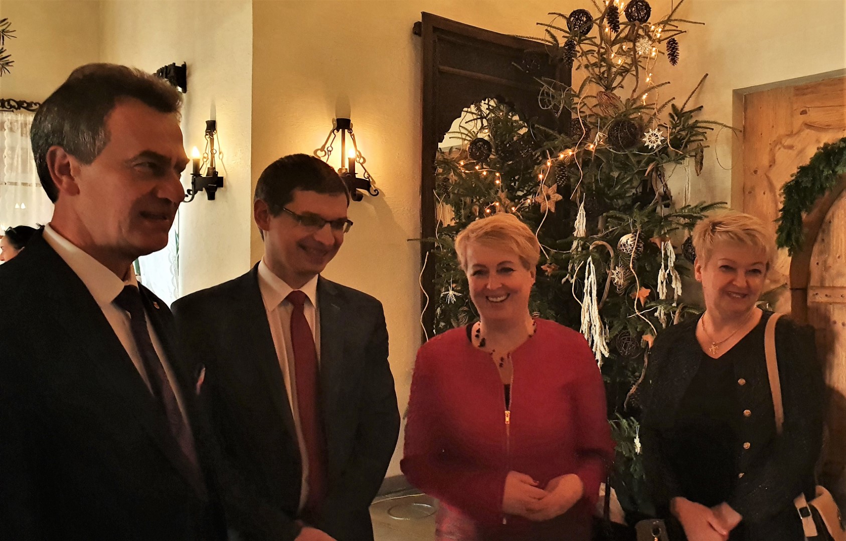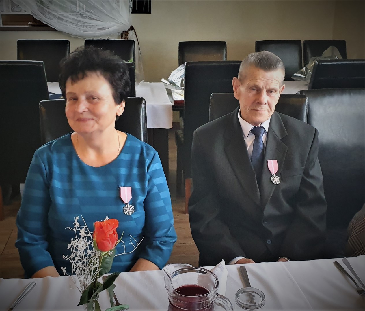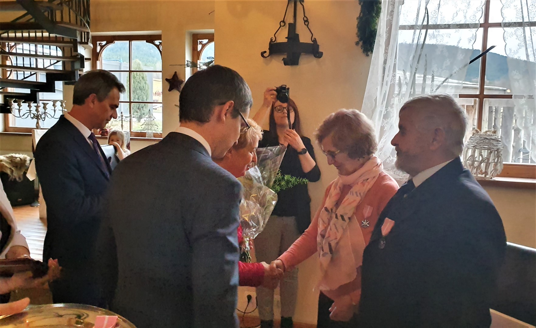 Życzenia dostojnym Jubilatom złożyli również Wójt Paweł Ptaszek, Starosta Limanowski Mieczysław Uryga oraz Przewodnicząca Rady Gminy Stanisława Urbańska. Do życzeń dołączyła się Kierownik USC, organizatorka uroczystości, Pani Maria Pala. Po czym nastąpiła ceremonia wręczenia medali, w której wzięły również udział Panie Stanisława Urbańska (Przewodnicząca RG Tymbark), Stanisława Kaptur (sekretarz Urzędu ), Zofia Duda (Skarbnik) oraz Maria Pala (Kierownik USC).
