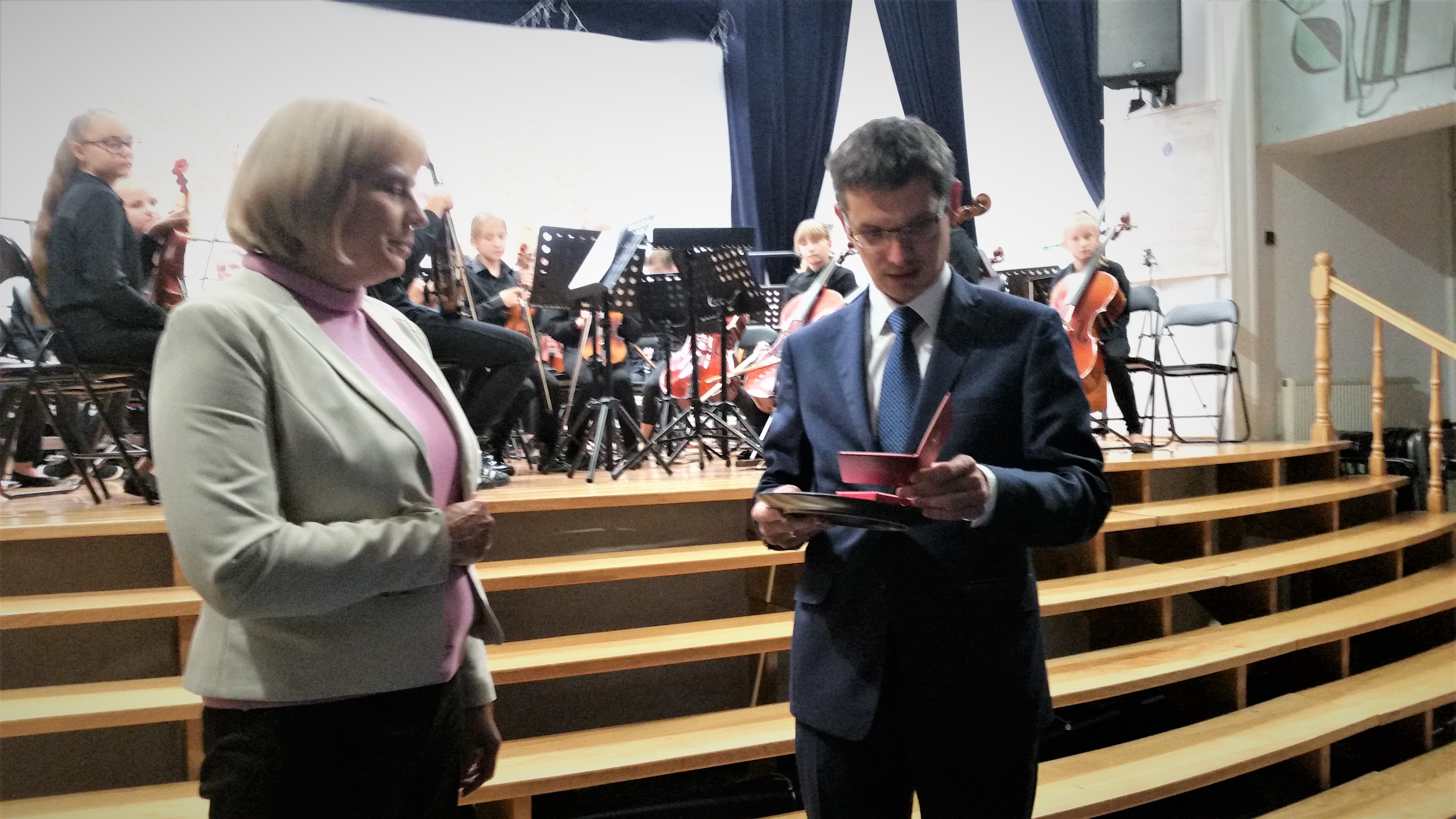 Dzisiaj cała społeczność Społecznej Publicznej Szkoły Muzycznej w Tymbarku obchodziła Dzień Edukacji Narodowej. Była okazja do złożenia przez uczniów życzeń dla grona pedagogicznego oraz pracowników Szkoły, wręczenia nagród dyrektora szkoły, jak też do okolicznościowych prezentacji muzycznych. Bardzo miłym akcentem było wręczenie nauczycielce Szkoły Pani Kindze Jurowicz Medalu Edukacji Narodowej. Zrobili to w imieniu Ministra Wójt Gminy Tymbark dr Paweł Ptaszek oraz Przewodnicząca Rady Gminy Tymbark Pani Stanisława Urbańska.
