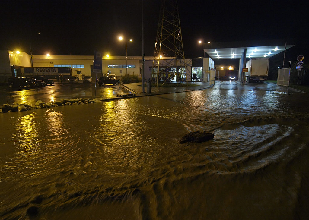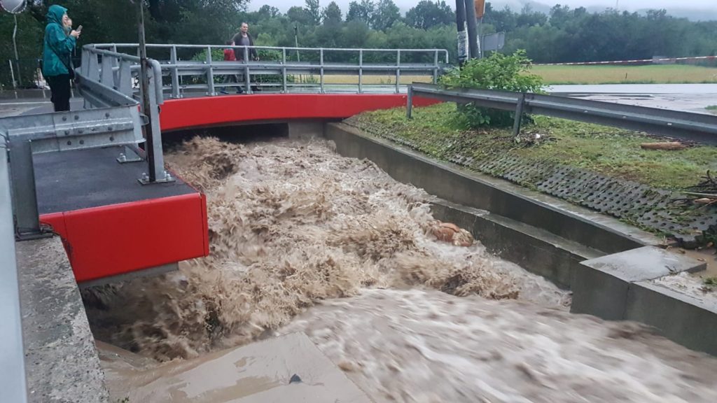 Woda powodziowa w okolicy wiaduktu i mostu na Doraziu