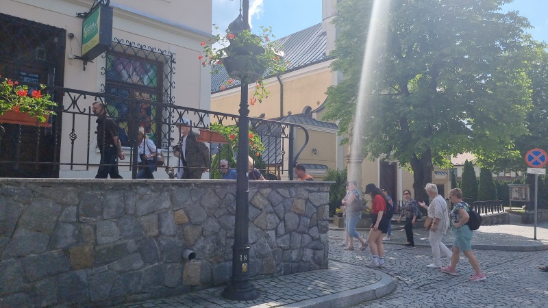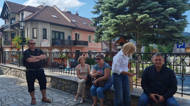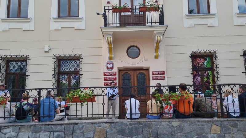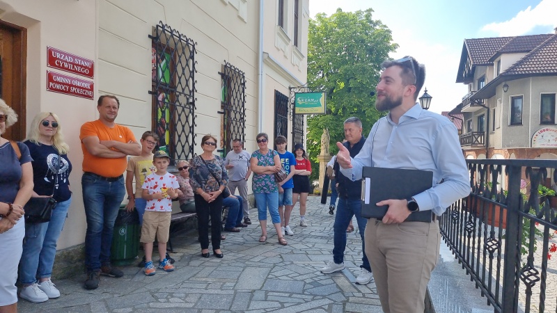 Tak też spacer rozpoczął się na tymbarskim Rynku, na którym spotkała się spora (jak na tego typu wydarzeniu) grupa osób.