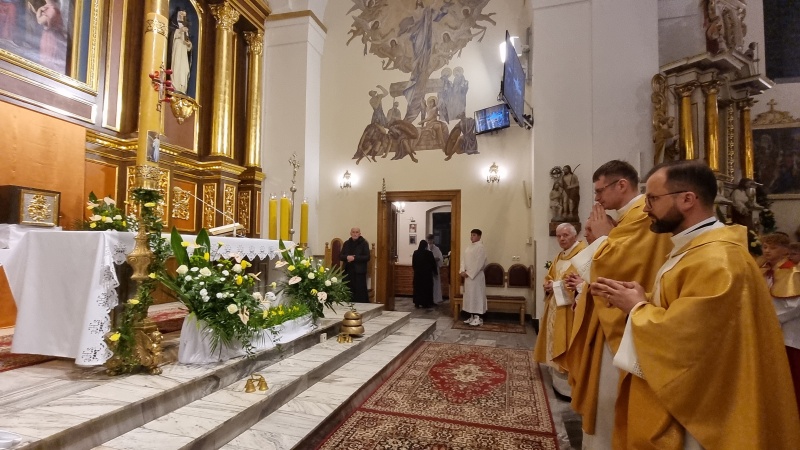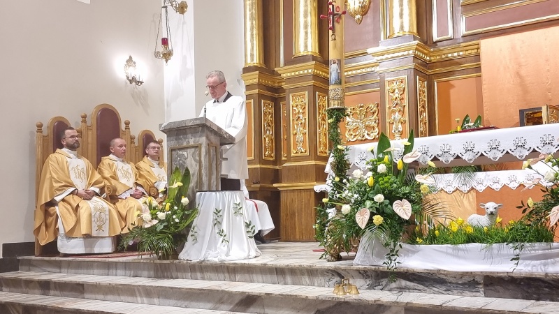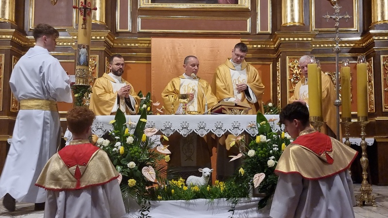 W Tymbarku Wigilii Paschalnej przewodniczył ks. prałat Tomasz Atłas, Exultet śpiewał ks.Kamil Kopyt. W koncelebrze Eucharystię sprawowali również ks. Józef Nowak oraz ks. Szczepan Depowski, który wygłosił homilię.