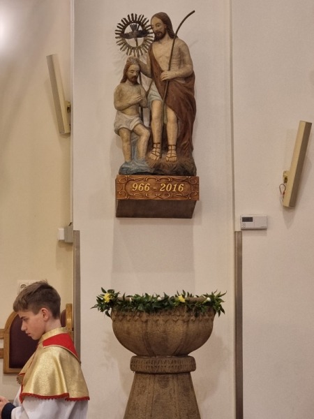 Po homilii następuje poświęcenie wody chrzcielnej, a po nim wierni odnawiają przyrzeczenia Sakramentu Chrztu Św.