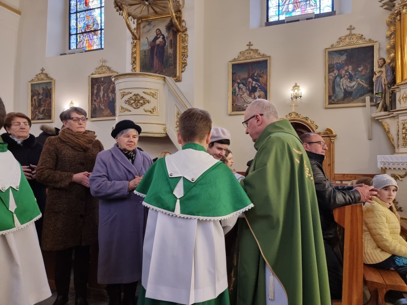 Na Mszę św.o godz.11 zostali zaproszeni chorzy, niepełnosprawni, emeryci i renciści. Eucharystia połączona była z udzieleniem sakramentu Namaszczenia Chorych, a po zakończeniu błogosławieństwem lourdzkim tj. błogosławieństwem Najświętszym Sakramentem.