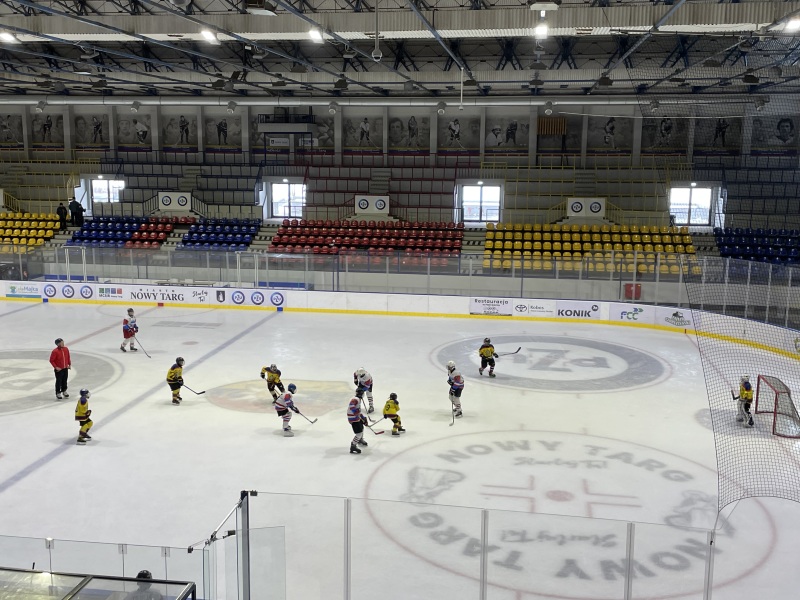 Juniorzy TKH Harnasie rozgrali ubiegłą niedzielę ambitne spotkanie sparingowe z młodzikami MMKS Podhale Nowy Targ (Miejski Młodzieżowy Klub Sportowy) na pełnowymiarowej tafli.