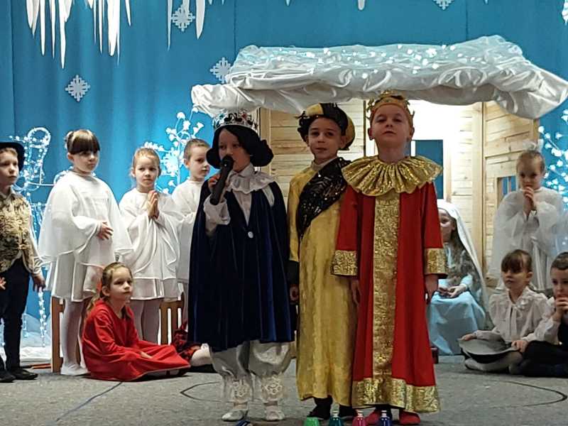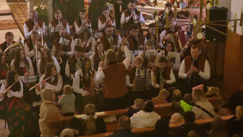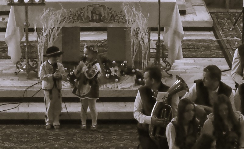 Orkiestra zagrała 18-cie kolęd, które były poprzedzone pastorałką w wykonaniu duetu przedszkolaków.