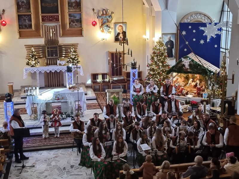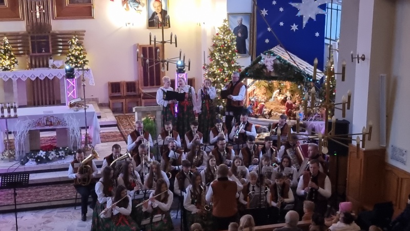Strażacka Orkiestra Dęta Tymbarski Ton zaprosiła dzisiaj do kościoła parafialnego w Podłopieniu na kolędowy koncert w kończącym się okresie świątecznym 2023/2024. Był to też koncert kończący obchody 30-lecia pracy orkiestry, koncert przed „swoją” publicznością, gdyż przeważająca większość członków Orkiestry są parafianami Parafii Podłopień.