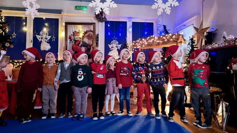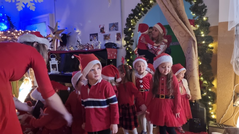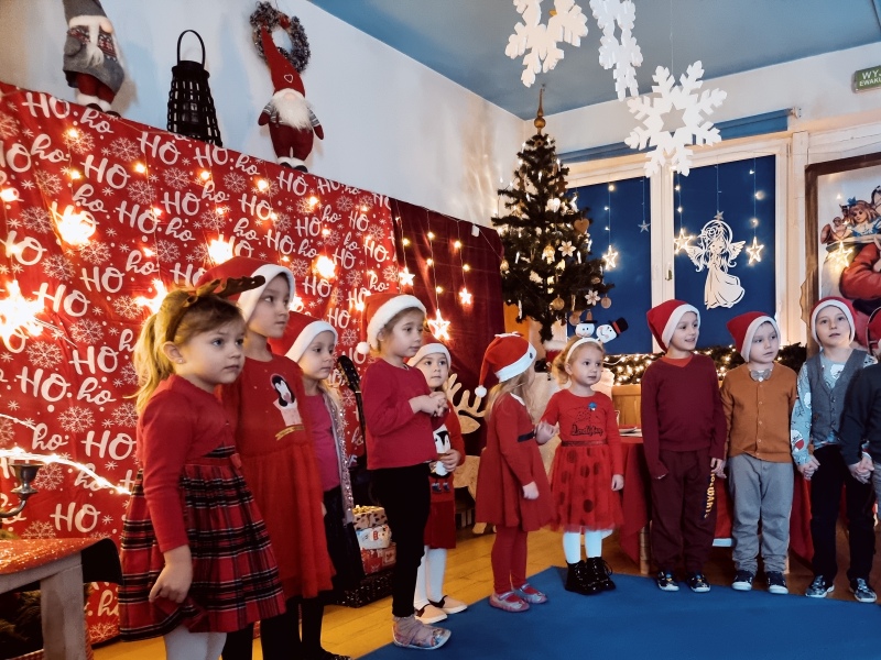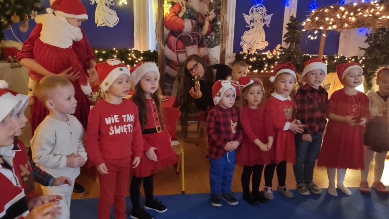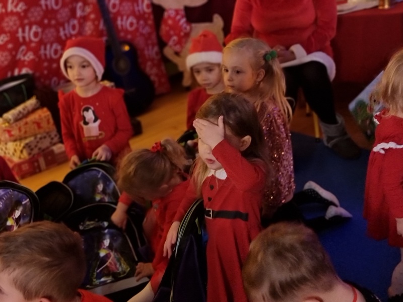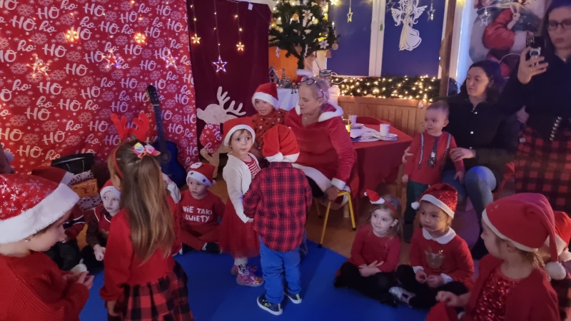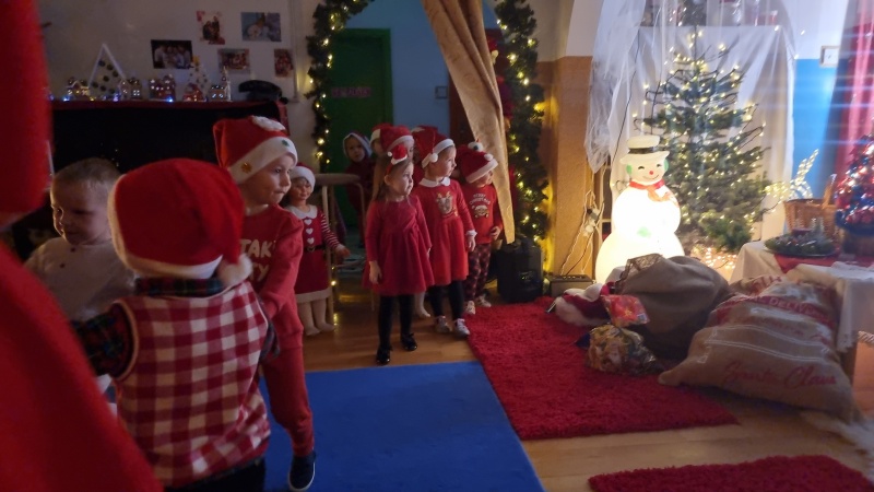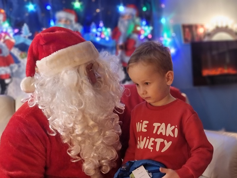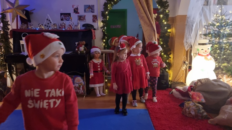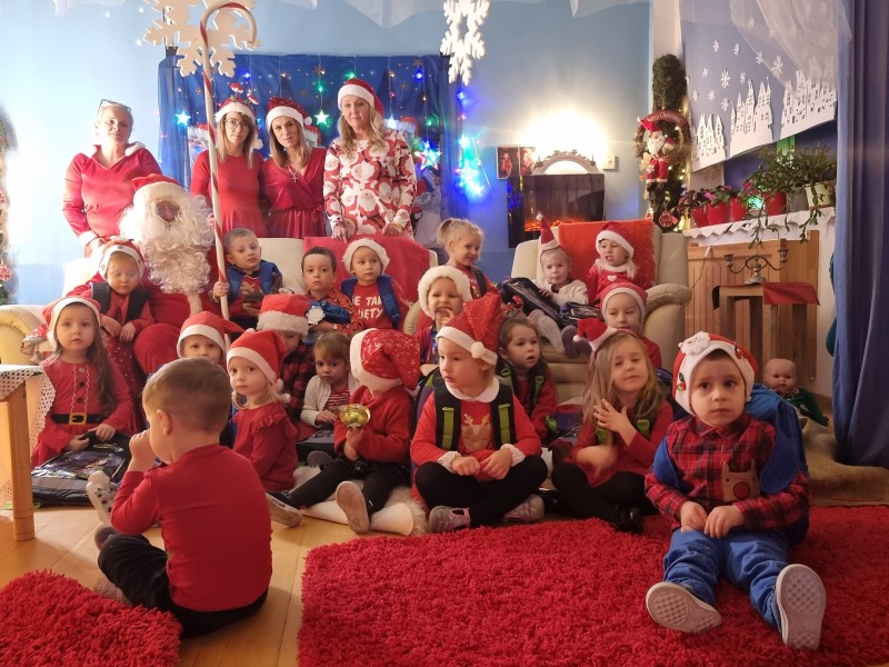 Święty Mikołaj przyszedł dzisiaj z wizytą do przedszkolaków, grupy starszej i maluchów, uczęszczających do Przedszkola U Cioci Agatki. Dzieci oczekiwały św. Mikołaja w świątecznym, specjalnie przygotowanym dla specjalnego Gościa, pomieszczeniu. W pierwszej kolejności grupa starsza spotkała się ze św. Mikołajem, potem maluchy. Jedna i druga grupa przygotowała i przedstawiła św. Mikołajowym specjalny „mikołajkowy” występ. Przyszedł czas na prezenty dla dzieci. Św.Mikołaj nie zapomniał też o przedszkolnych Ciociach. Był czas na pamiątkowe fotografie ze św. Mikołajem. Na buziach dzieciaków widać było przejęcie, ciekawość i radość.