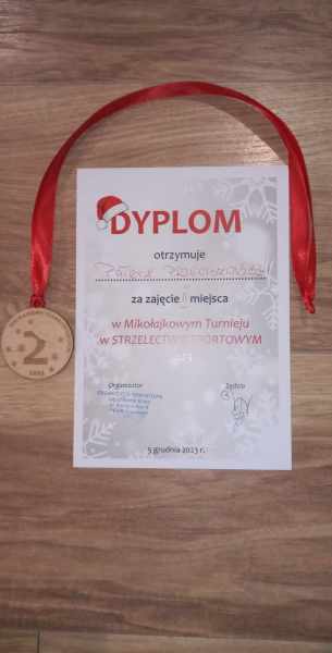 Sekcyjny ZS Patryk Przeciszowski z Jednostki Strzeleckiej nr 2007 im. kpt. Tadeusza Paolone ZS „Strzelec” OSW w Tymbarku, uczeń Oddziału Przygotowania Wojskowego w Zespole Szkół im. KEN w Tymbarku, zajął drugie miejsce w Mikołajkowym Turnieju w Strzelectwie Sportowym zorganizowanym przez LOK Limanowa. W zawodach tymbarskiego Strzelca reprezentowali: mł. insp. ZS Stanisław Opach, drużynowa ZS Dominika Szczepaniak, st. strzelec ZS Robert Krieger, sekcyjny ZS Paweł Leśniewski oraz uczeń klasy wojskowej Marek Gruszka. Kadra tymbarskiego Strzelca składa serdeczne podziękowanie Pani Iwonie Ubik, nauczycielowi wychowawcy w Internacie Zespołu Szkół w Tymbarku za udzielaną pomoc tymbarskiej jednostce w realizacji zadań statutowych i opiekę nad młodzieżą strzelecką.