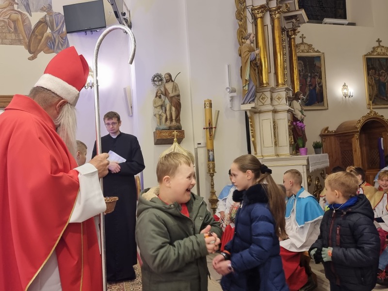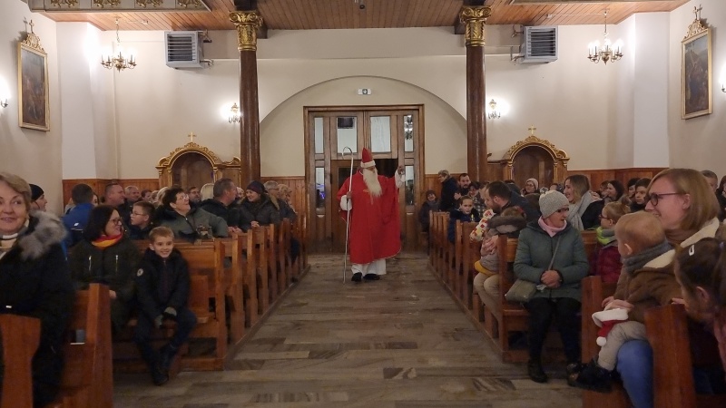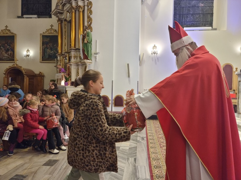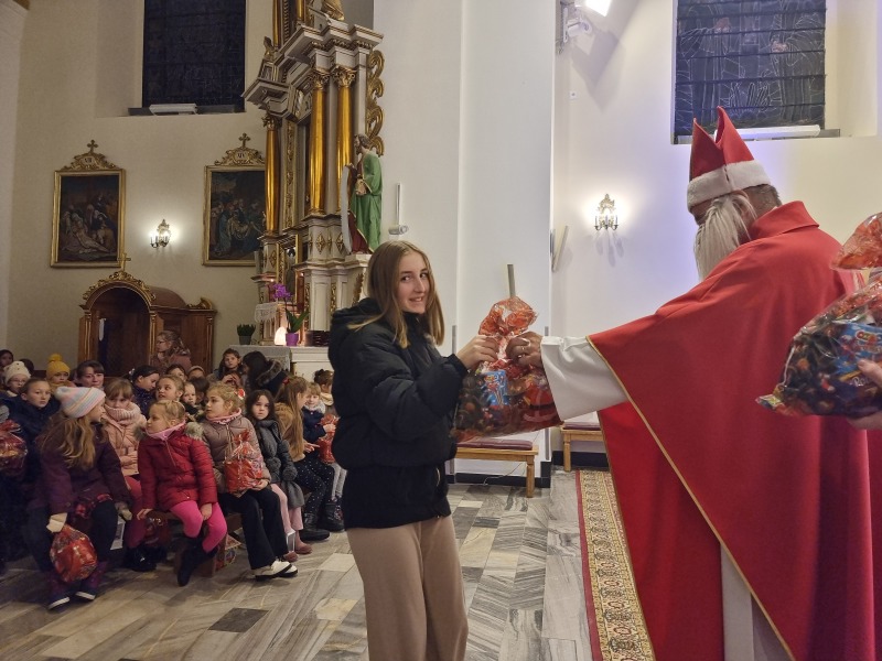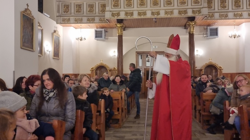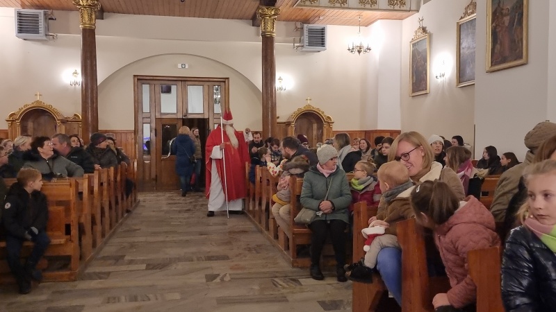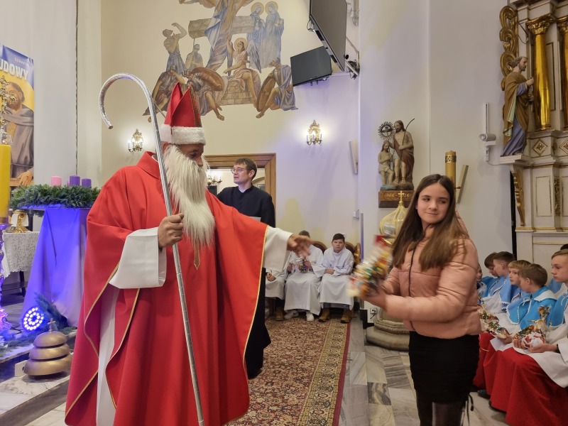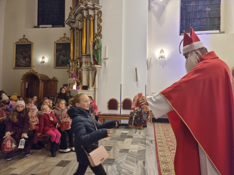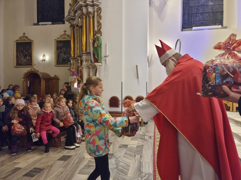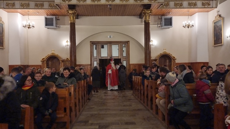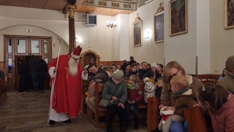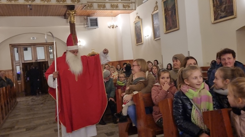 Za zakończonej Mszy św.roratniej do kościoła parafialnego w Tymbarku wszedł św. Mikołaj, zmęczony, po długiej podróży, po dniu wyczerpującej pracy. Ale przecież wiedział, że nie może nie spotkać się z dziećmi, które w każdy dzień w Adwent biorą udział w Roratach, oraz z tymi, które przez cały rok aktywnie uczestniczą w życiu parafii.