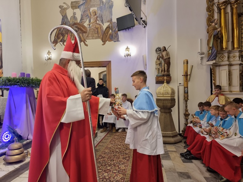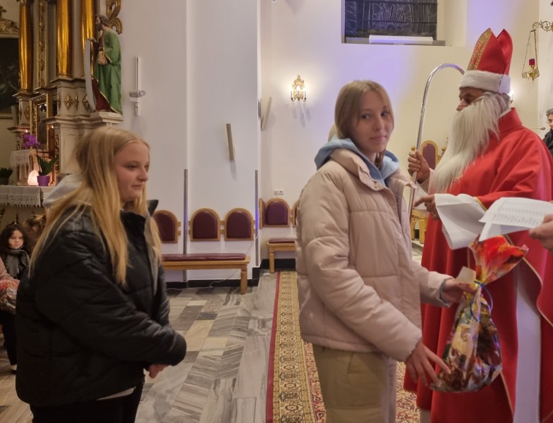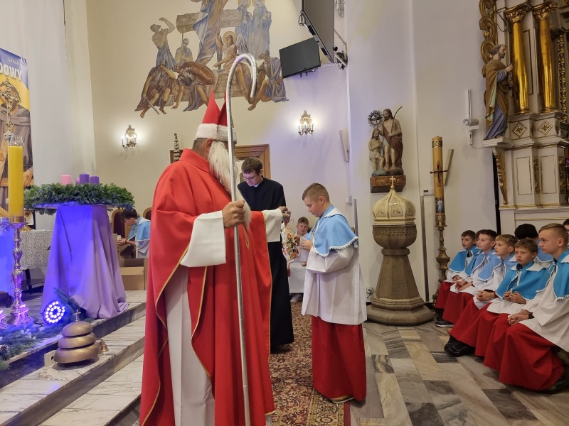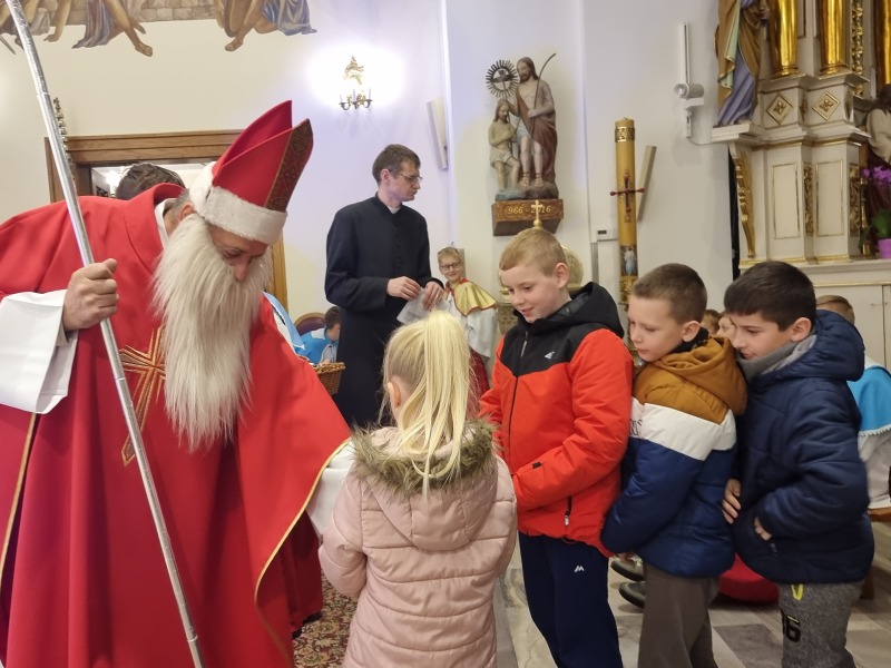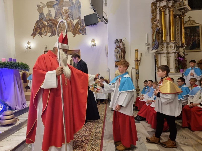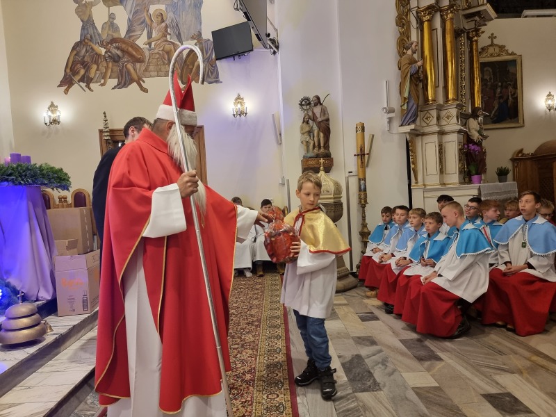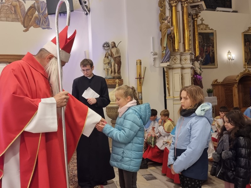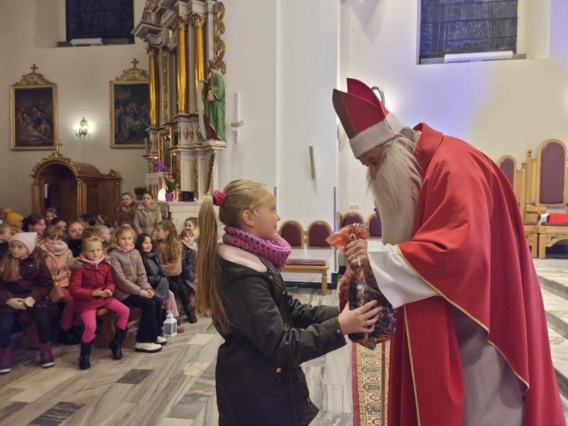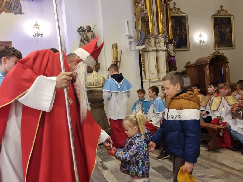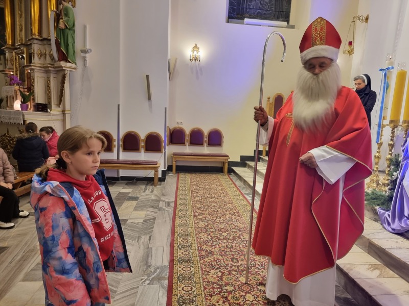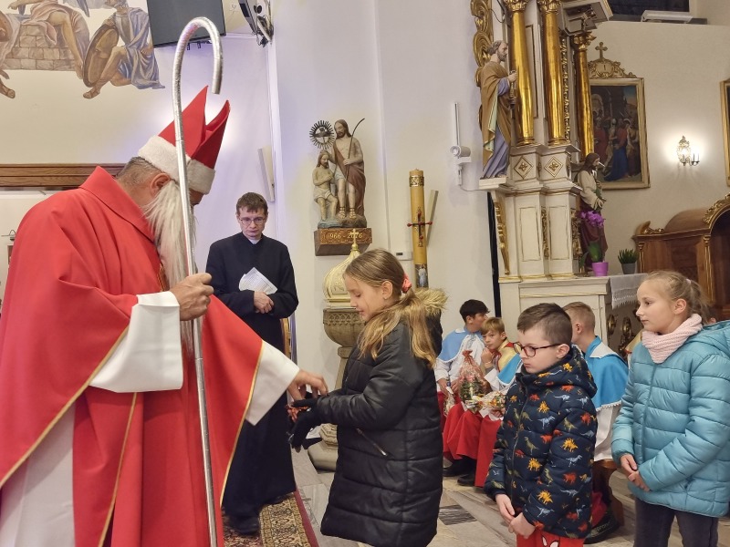 Za zakończonej Mszy św.roratniej do kościoła parafialnego w Tymbarku wszedł św. Mikołaj, zmęczony, po długiej podróży, po dniu wyczerpującej pracy. Ale przecież wiedział, że nie może nie spotkać się z dziećmi, które w każdy dzień w Adwent biorą udział w Roratach, oraz z tymi, które przez cały rok aktywnie uczestniczą w życiu parafii.