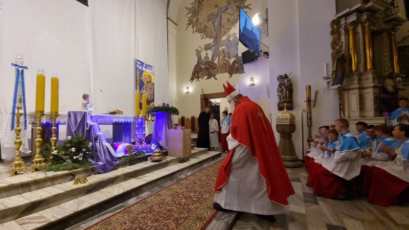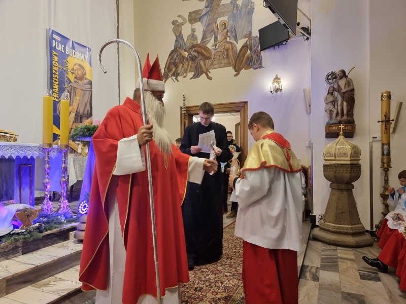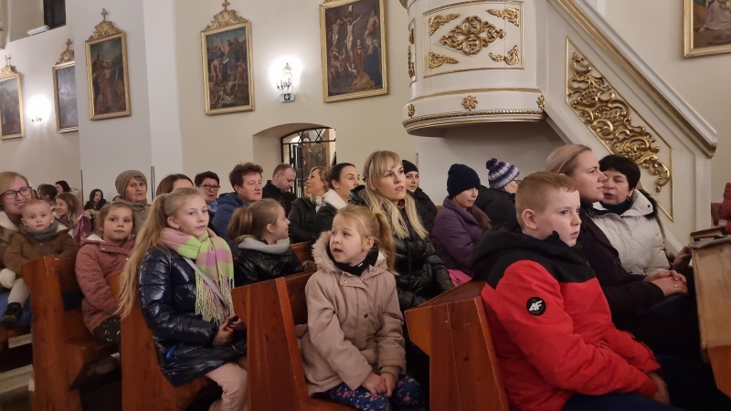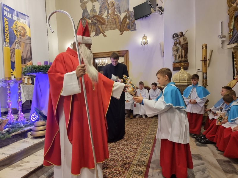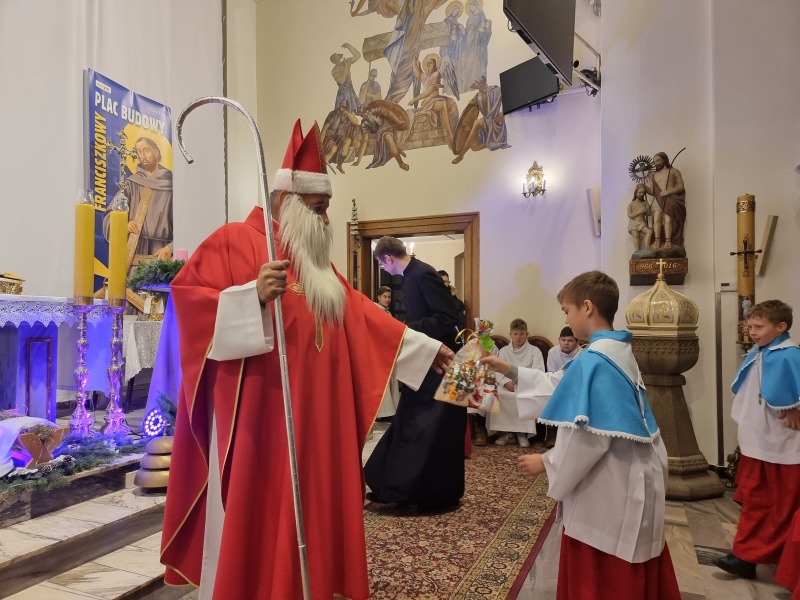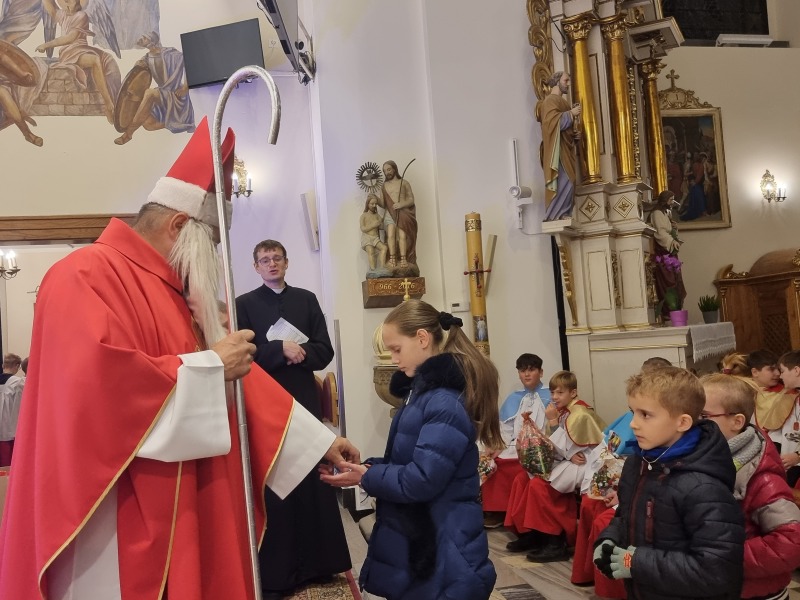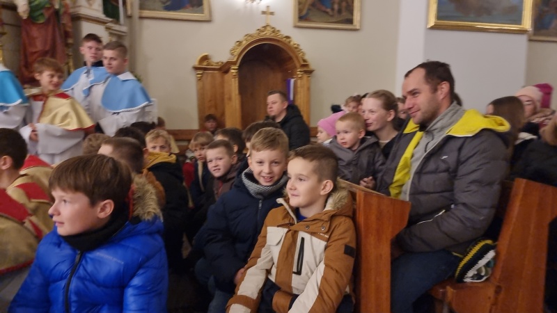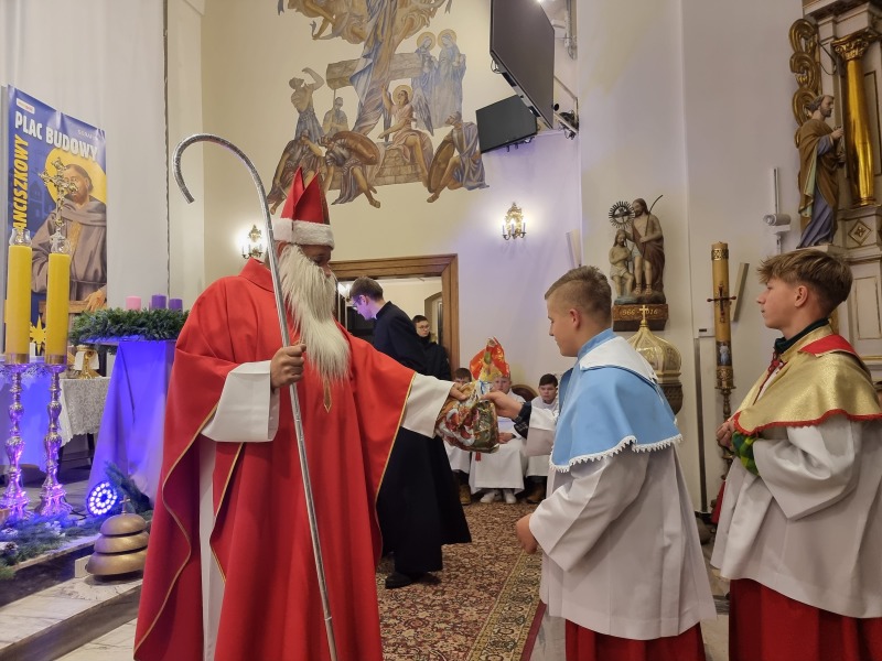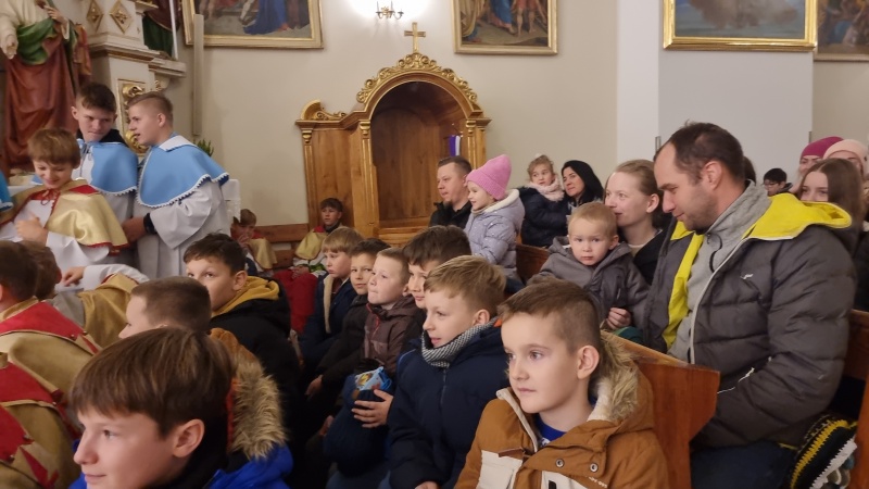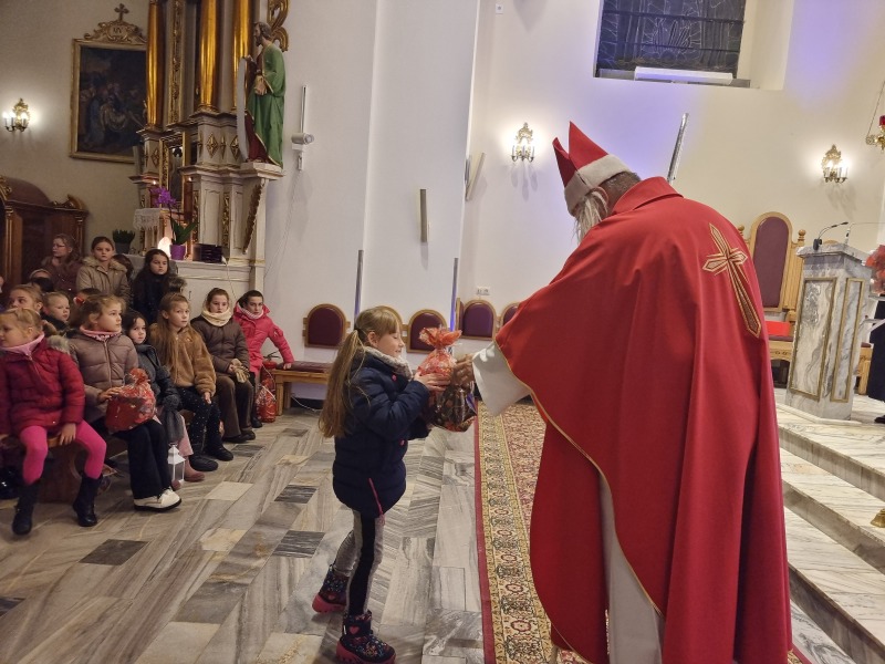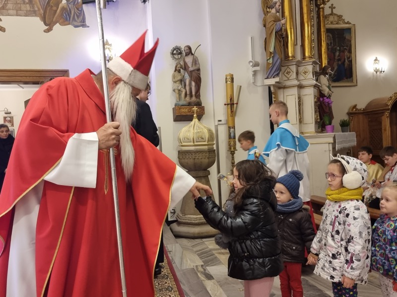 Za zakończonej Mszy św.roratniej do kościoła parafialnego w Tymbarku wszedł św. Mikołaj, zmęczony, po długiej podróży, po dniu wyczerpującej pracy. Ale przecież wiedział, że nie może nie spotkać się z dziećmi, które w każdy dzień w Adwent biorą udział w Roratach, oraz z tymi, które przez cały rok aktywnie uczestniczą w życiu parafii.