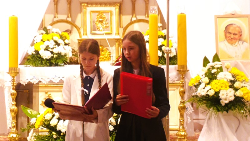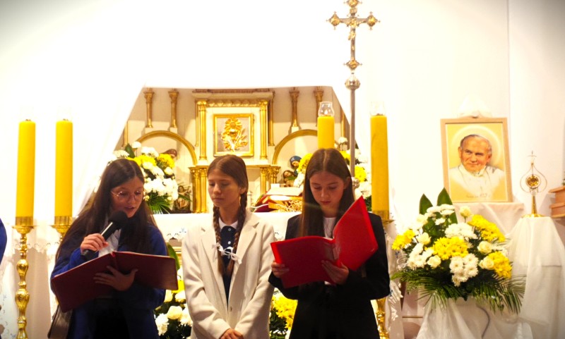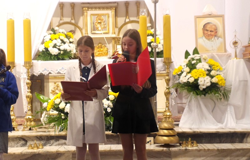 W tą niedzielę obchodzony jest Dzień Papieski. Z tej okazji młodzież wraz z zespołem Gloria Mariae, pod opieką ks. Szczepana, przygotowała montaż słowno – muzyczny, który został wykonany przed Mszą Św. o godz.10.