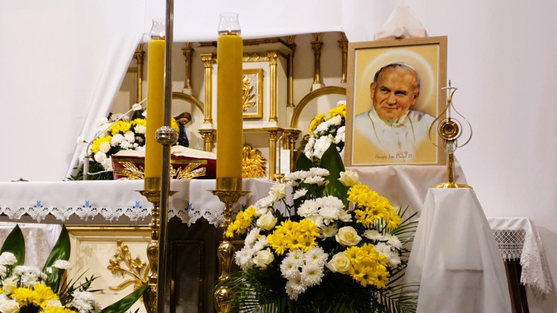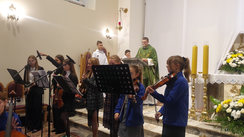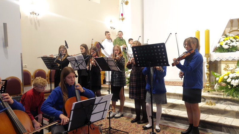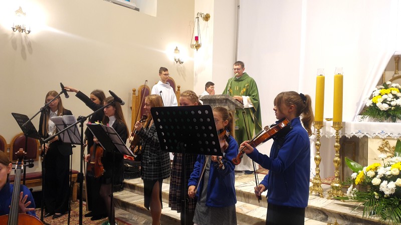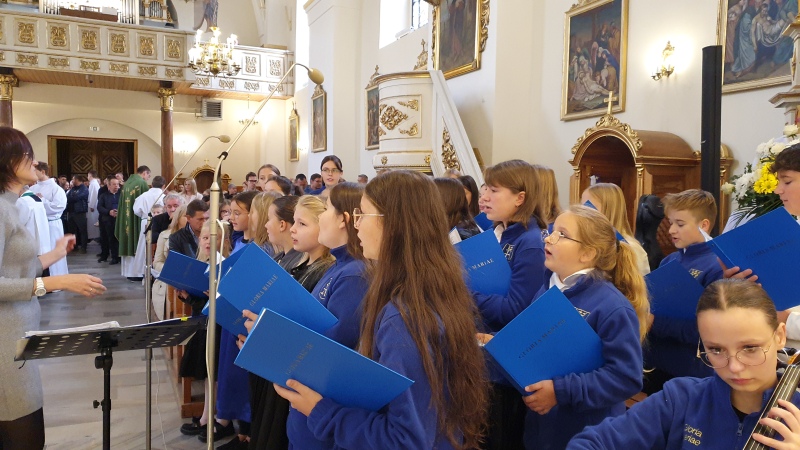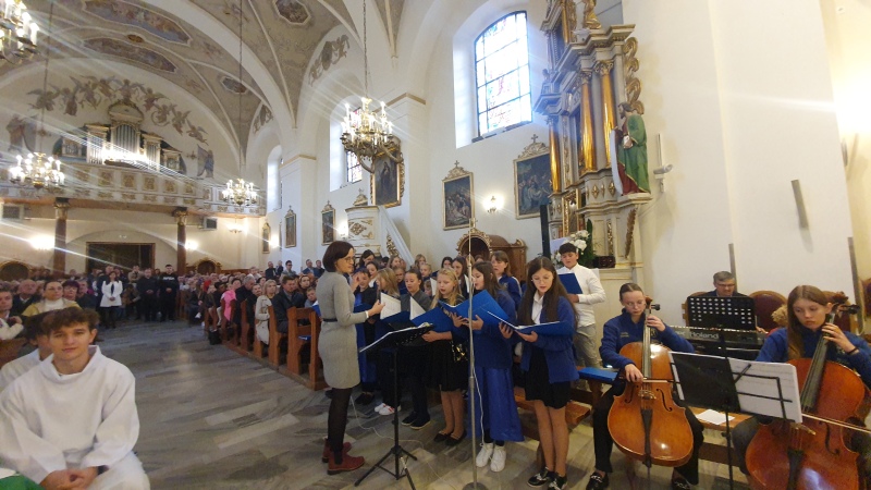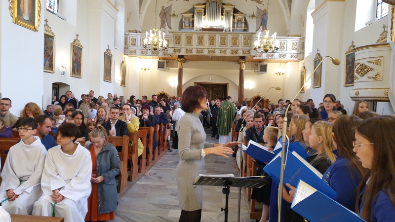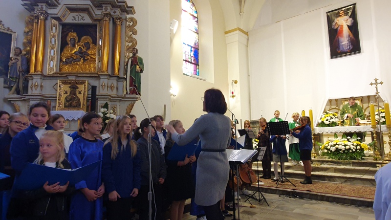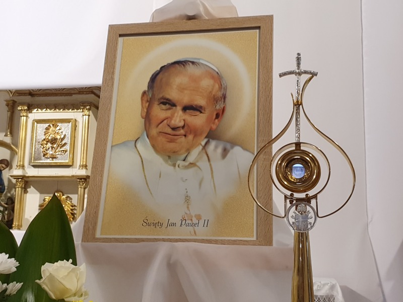 Eucharystia w niedzielę o godz.10, w Dniu Papieskim, rozpoczęła się montażem słowo-muzycznym przygotowany przez młodzież oraz zespół Gloria Mariae. Zespół Gloria Mariae, prowadzony przez Grzegorza Urbańskiego oraz Małgorzatę Krzyżak, zapewnił oprawę muzyczną podczas Eucharystii. Na zakończenie zaśpiewał ulubiony utwór św.Jana Pawła II „Barkę”.