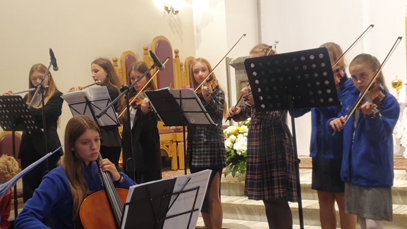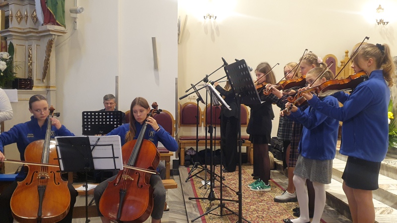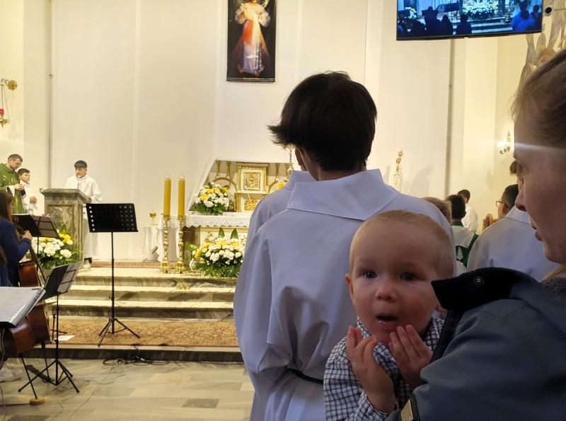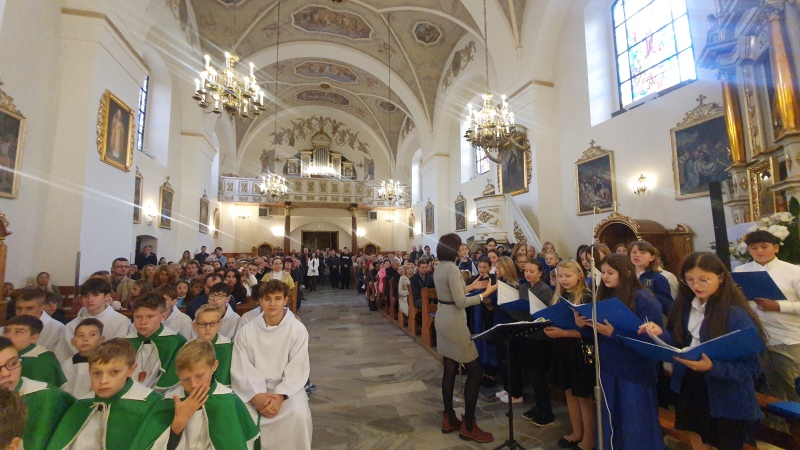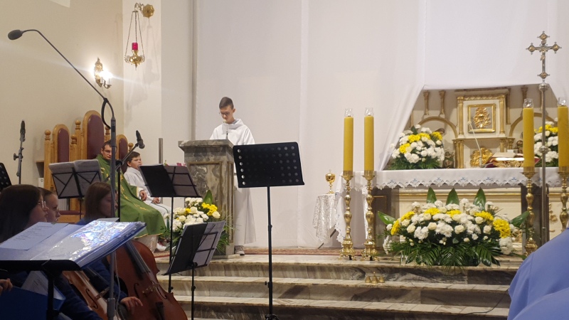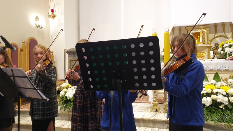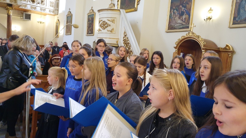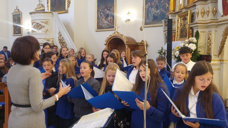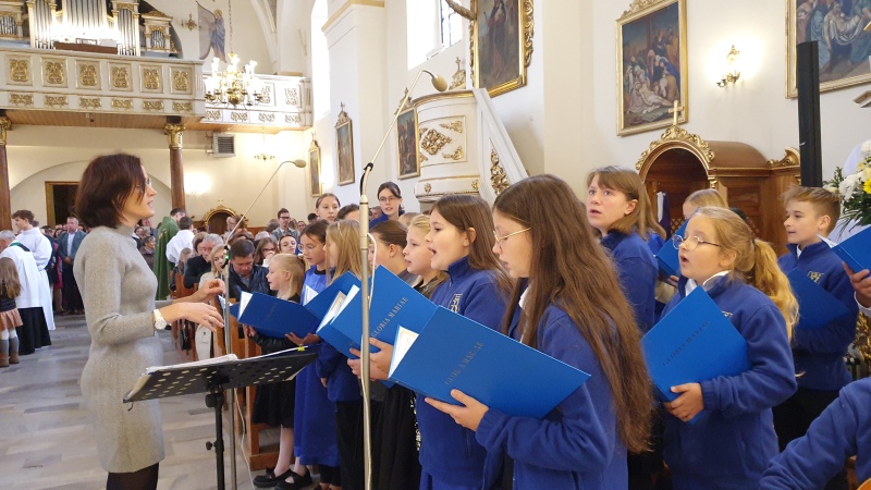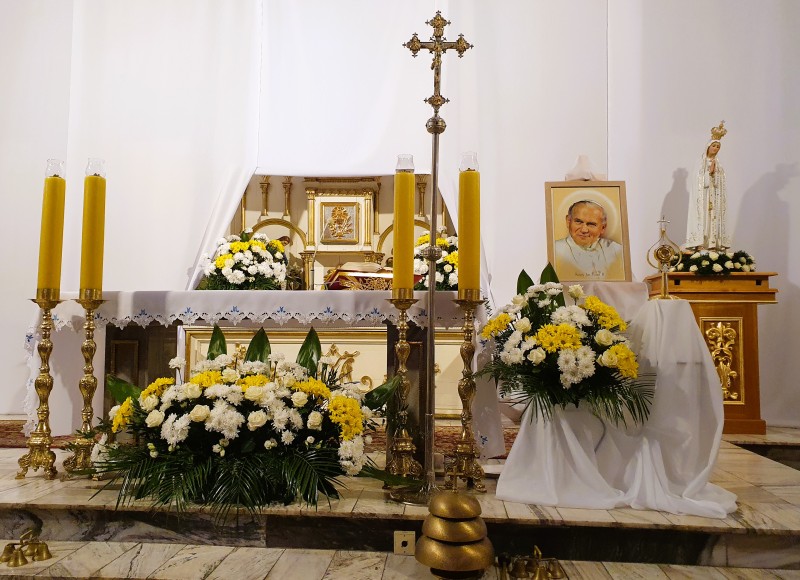Eucharystia w niedzielę o godz.10, w Dniu Papieskim, rozpoczęła się montażem słowo-muzycznym przygotowany przez młodzież oraz zespół Gloria Mariae. Zespół Gloria Mariae, prowadzony przez Grzegorza Urbańskiego oraz Małgorzatę Krzyżak, zapewnił oprawę muzyczną podczas Eucharystii. Na zakończenie zaśpiewał ulubiony utwór św.Jana Pawła II „Barkę”.