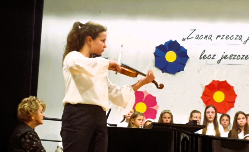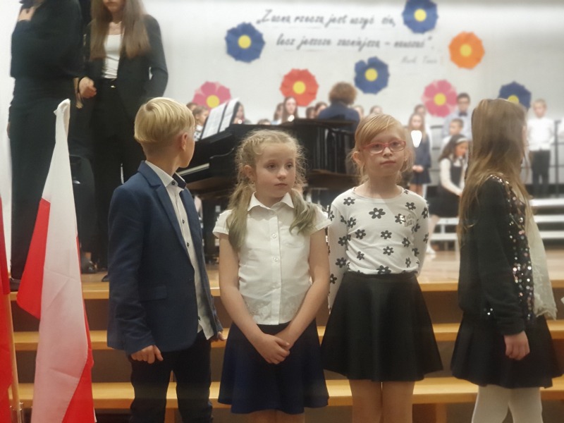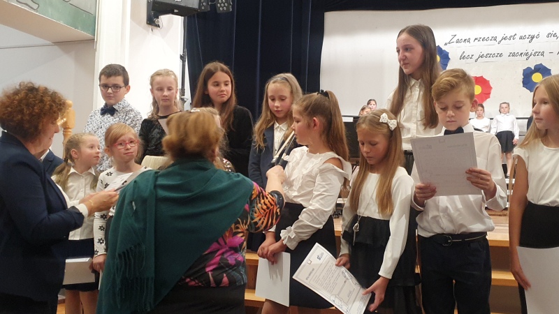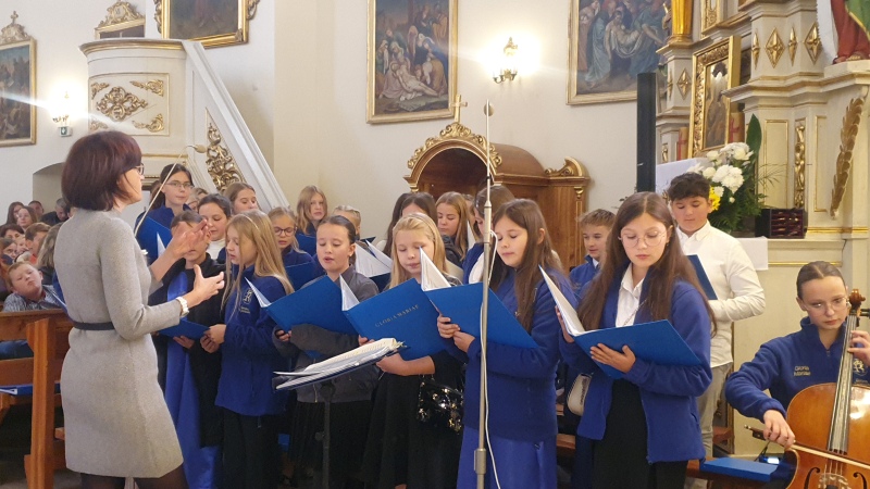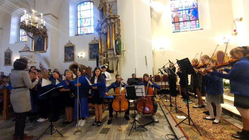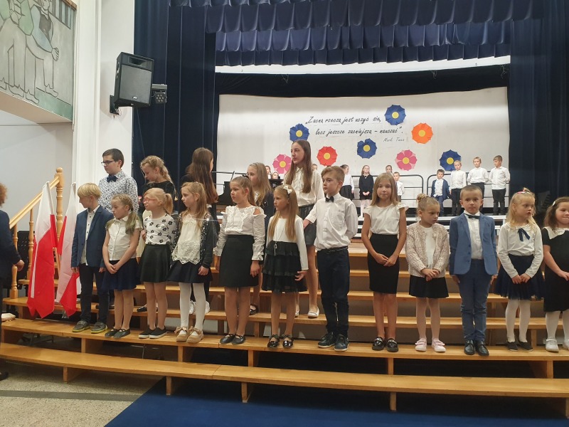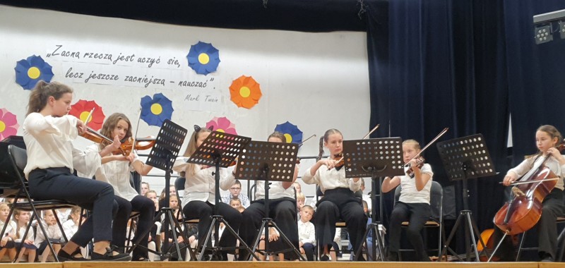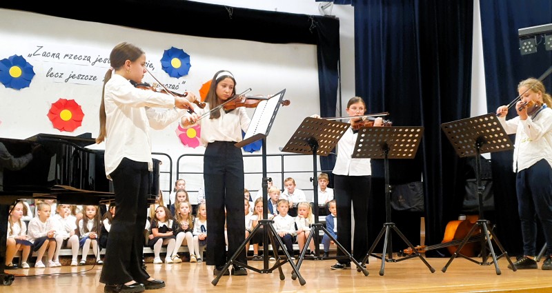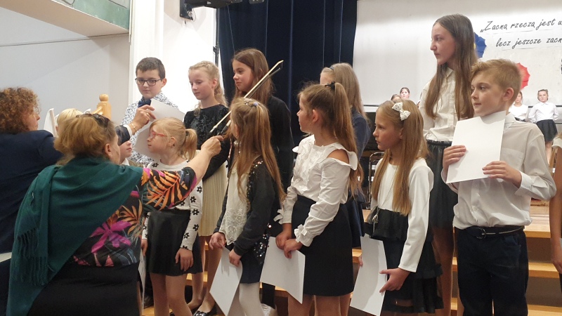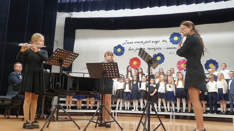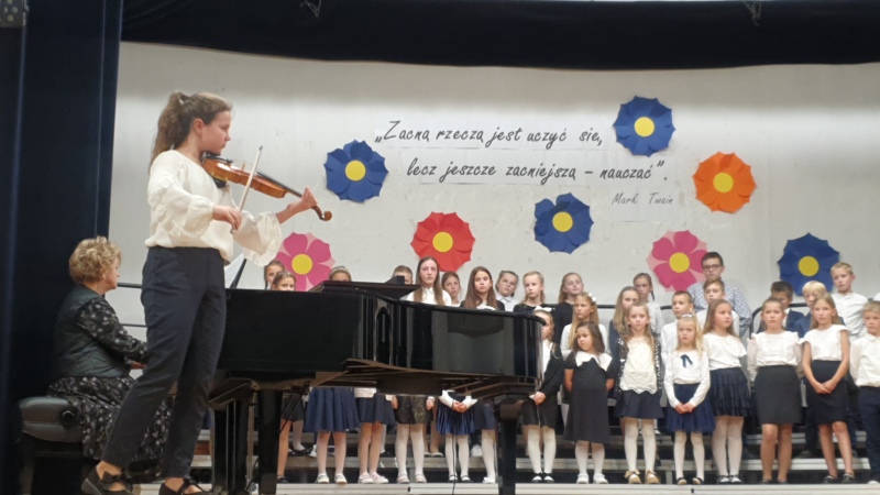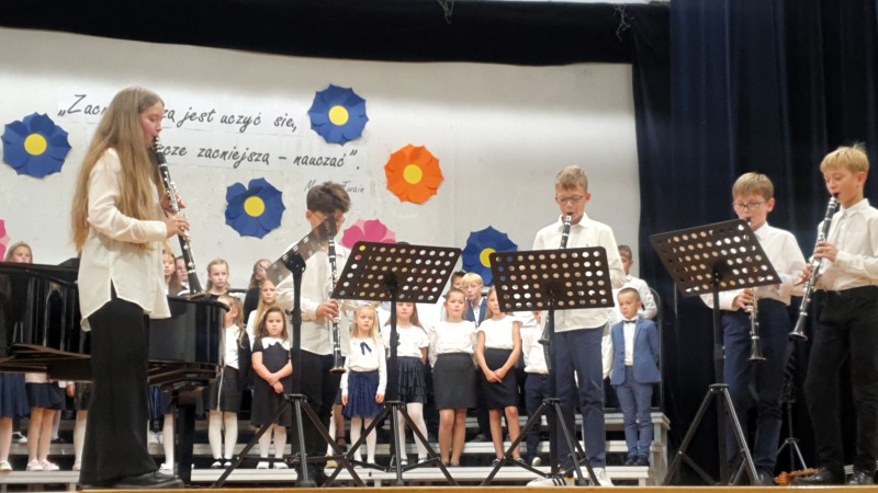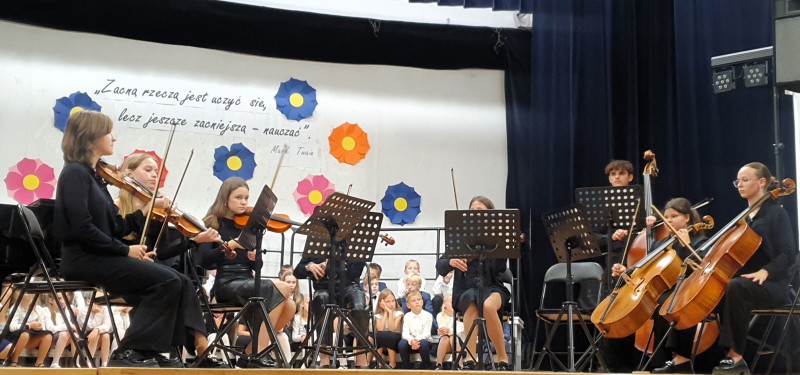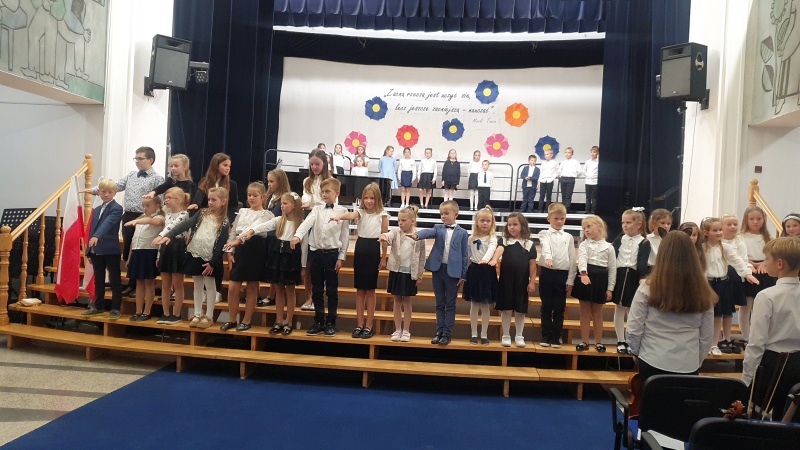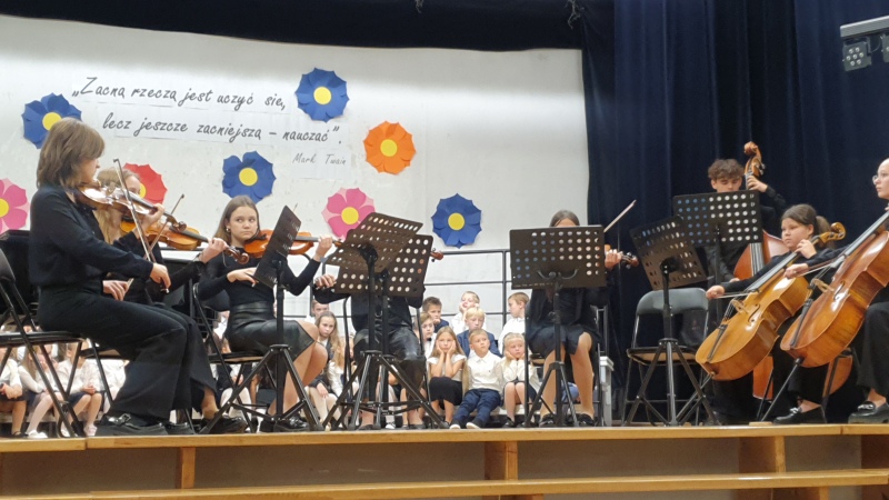 Uczniowie Dzień Nauczycieli uczcili życzeniami, a następnie koncertem w wykonaniu zespołów kameralnych oraz szkolnego dziecięcego chóru (złożonego głównie z pierwszoklasistów) prowadzonego przez panią Beatę Mamak.