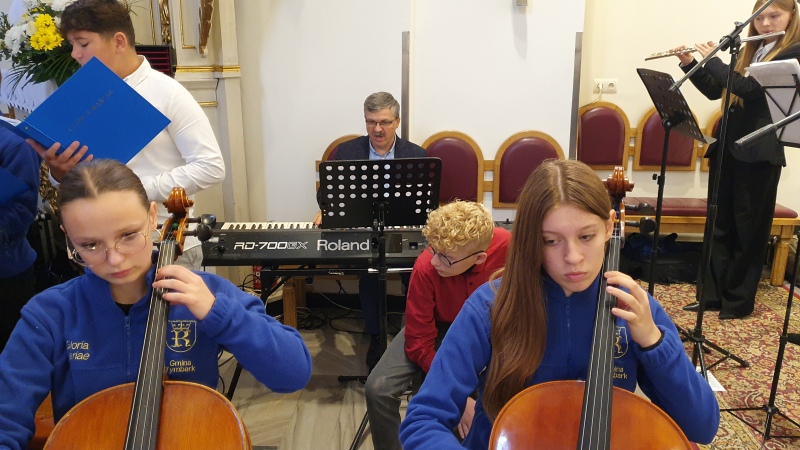 W auli Społecznej Publicznej Szkoły Muzycznej w Tymbarku odbyła się dzisiaj miła, połączona, uroczystość. Obchody Dnia Nauczyciela oraz pasowanie pierwszoklasistów na uczniów.
