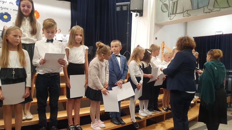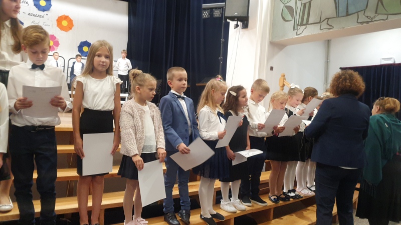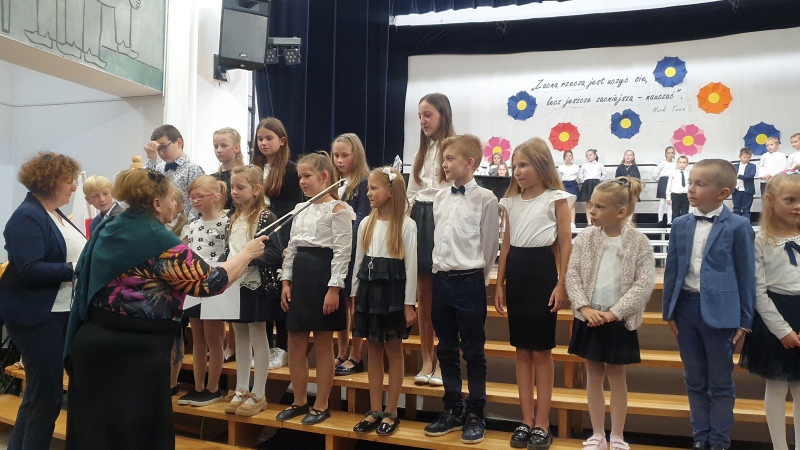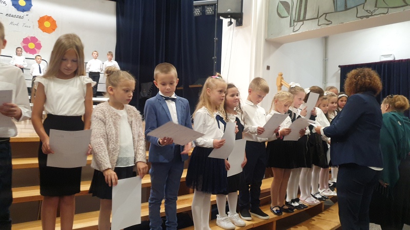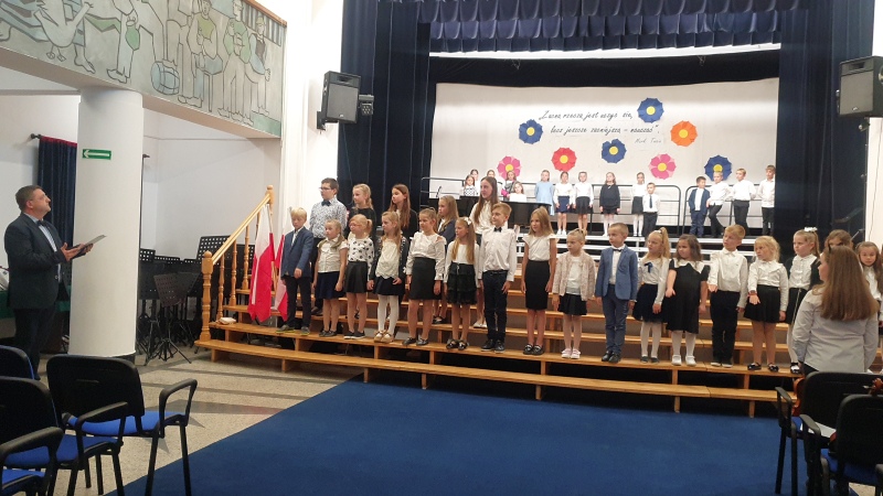 Akt ślubowania, poprzedzony krótkim wystąpieniem Pani Dyrektor Haliny Waszkiewicz-Rosiek, poprowadził zastępca dyrektora Szkoły Pan Robert Rosiek.