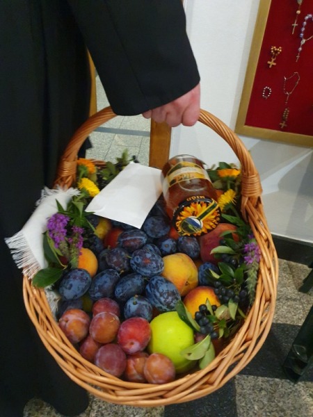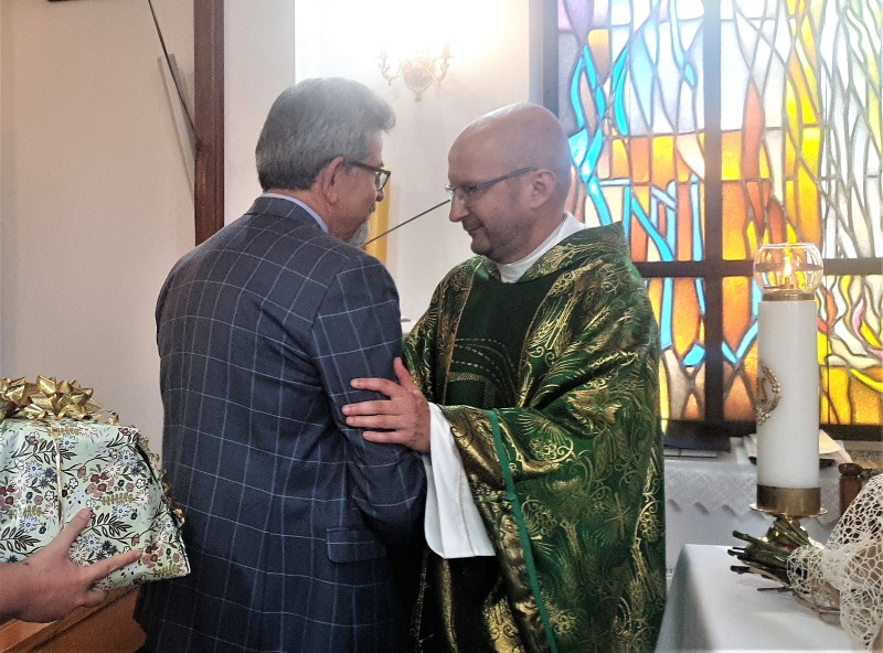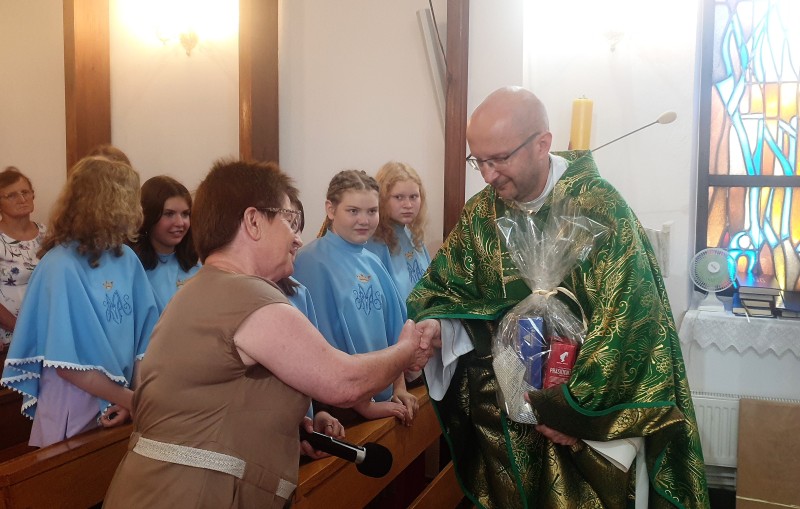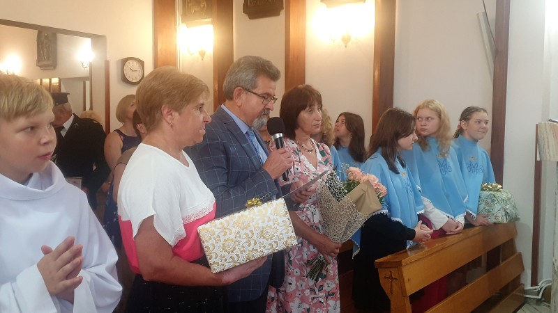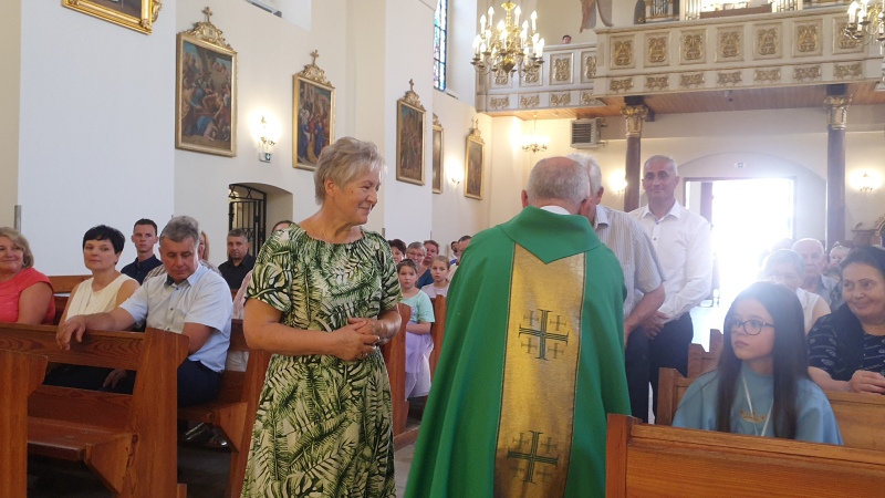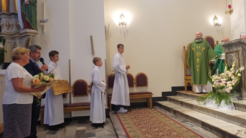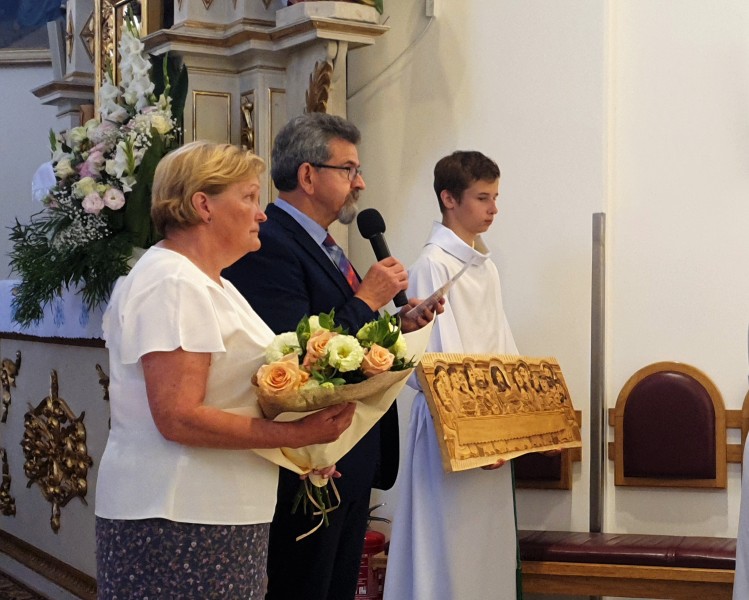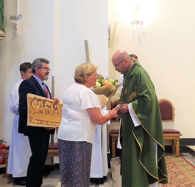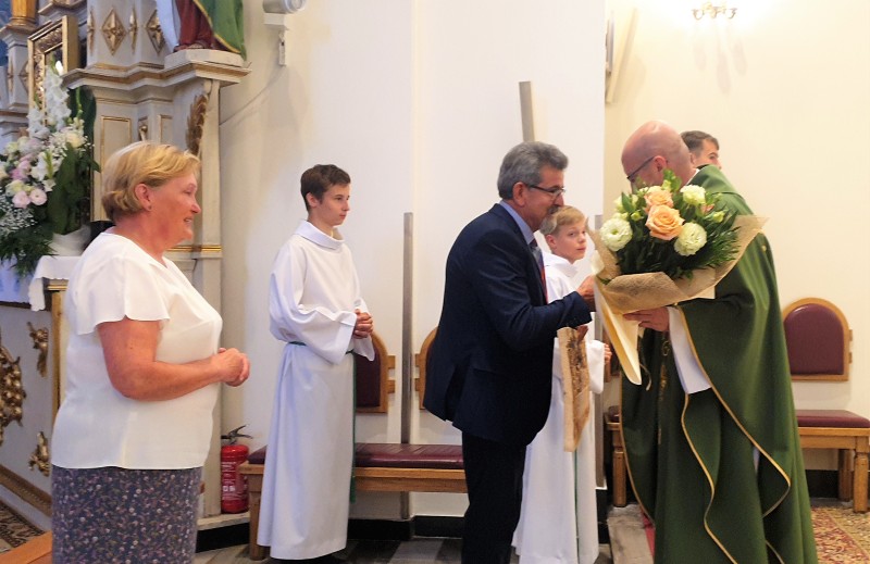 Po Mszy św. złożono ks.Sylwestrowi podziękowania i życzenia, jak też odczytano życzenia złożone listem przez ks.biskupa dla Jadwigi i Grzegorza Kasińskich, którzy obchodzą 50-tą rocznicę ślubu i za których była druga intencja mszalna.