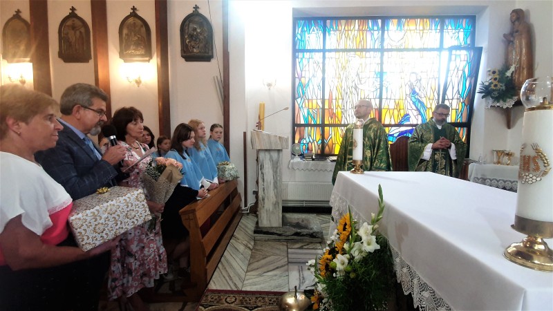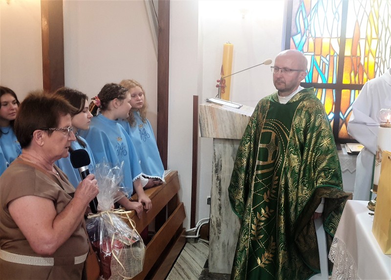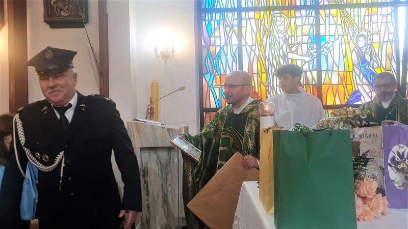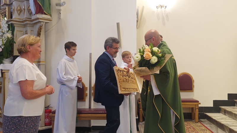 Podziękowania i życzenia złożyli przedstawiciele Rady Parafialnej oraz ks. proboszcz dr Jan Banach, który też przewodniczył Mszy św.koncelebrowanej oraz wygłosił homilię. Msza św. sprawowana też była intencji Barbary i Andrzeja Ubików, którzy przeżywają 50-tą rocznicę sakramentu małżeństwa oraz rodziny Artura, który dzisiaj przyjął Sakrament Chrztu.