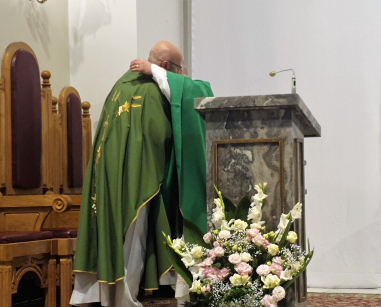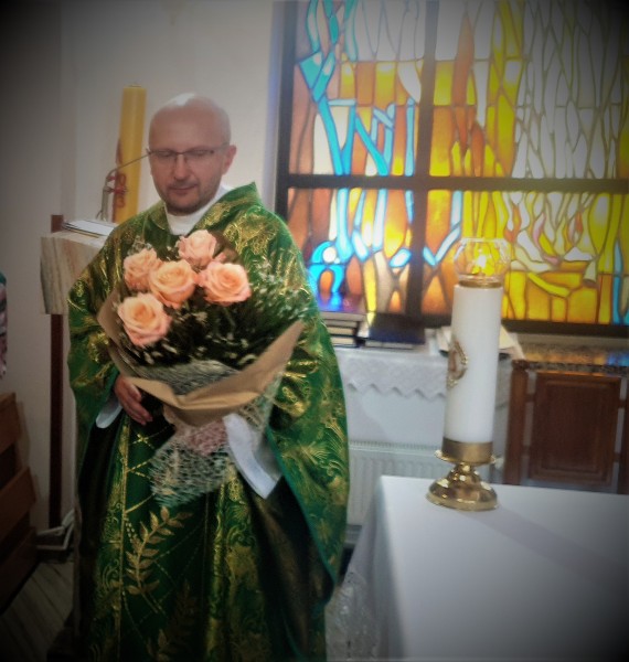 Dziękujemy Ci, że od początku swej obecności w naszej parafii pokazałeś nam jak można z prostotą i pokorą służyć Bogu i drugiemu człowiekowi w codziennej, ofiarnej pracy duszpasterskiej. Pozostaną w naszej pamięci Twoje refleksyjne, zawsze bardzo starannie przygotowane homilie i kazania okolicznościowe. Dziękujemy za to, że chciałeś aby Pan Jezus utajony w tej małej, białej Hostii był jak najbliżej każdego z nas, podchodząc z monstrancją do poszczególnych grup wiernych w kaplicy. Dziękujemy za ten uroczy łańcuszek dziecięcych serc i rąk, który starałeś się tworzyć na Eucharystii wokół ołtarza na czas modlitwy pańskiej Ojcze Nasz, oraz za piękny, ciepły sposób rozmowy z dziećmi o Bogu i sprawach wiary. Dzięki Tobie jeszcze bardziej zrozumieliśmy, że w przeżywaniu Ofiary Eucharystycznej nie może być pośpiechu, a każda liturgia przed Najświętszym Sakramentem wymaga należytego spokoju, wyciszenia i kontemplacji.