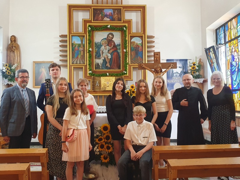 W intencji księdza Sylwestra Taraszki, który kończy czteroletnią pracę duszpasterską w Parafii Tymbark, a szczególnie we wspólnocie Piekiełka została w niedzielę o godz.9.30 Eucharystia. Przewodniczył jej ksiądz Paweł Kita, pochodzący z Piekiełka, w koncelebrze Mszę św. sprawował ks.Sylwester. Homilię wygłosił ks. proboszcz Parafii Tymbark dr Jan Banach. Oprawę muzyczną zapewnił młodzieżowy Zespół św.Józefa z Piekiełka, który prowadzi Lucyna Woźniak.
