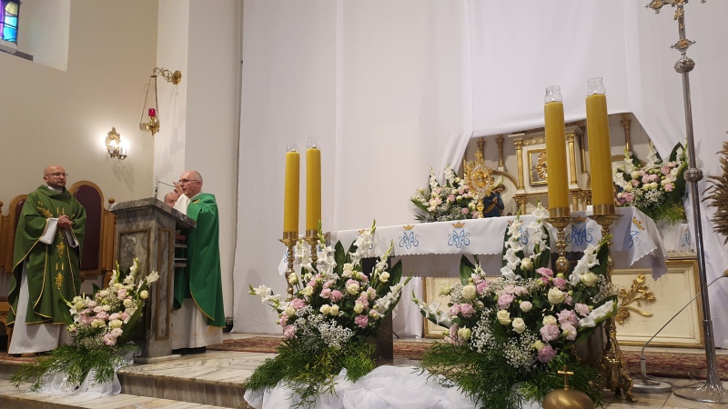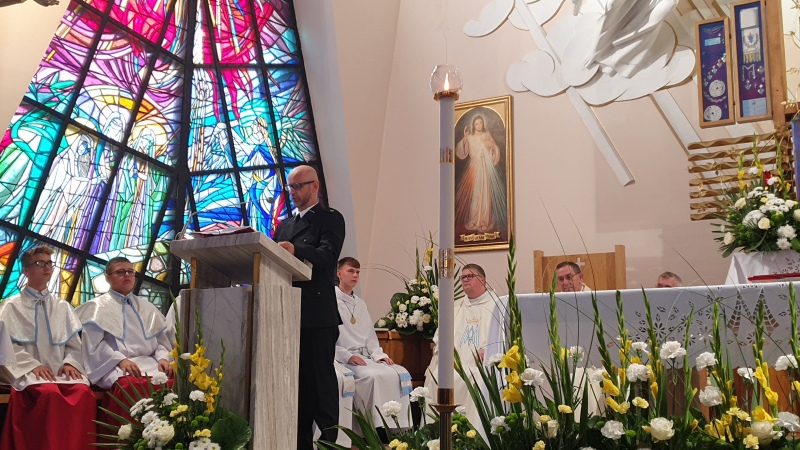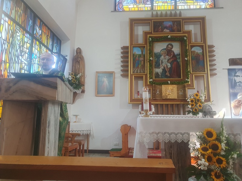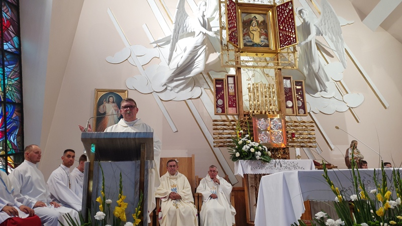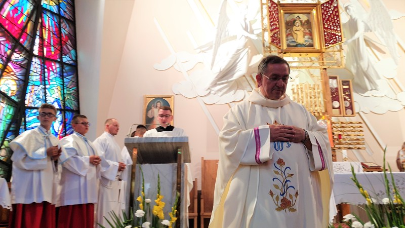 Z powodu ulewnego deszczu tym razem Msza św. (wzorem lat ubiegłych) nie była sprawowana na ołtarzu polowym lecz w kościele.