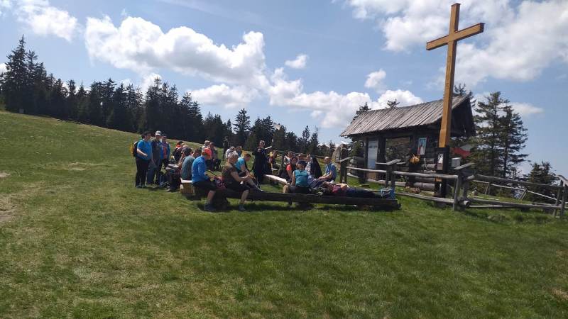 W ten niedzielny poranek, tuż o brzasku dnia – 21 maja – trzydziestu śmiałków stanęło na starcie XIII Beskidzkiego Camino, aby poprzez pielgrzymowanie górami bronić świętości Jana Pawła II, Jego dobrego imienia. Dokładnie o 4.30, po krótkiej modlitwie o bezpieczeństwo na szlaku,  grupa wyrusza żółtym szlakiem na Mogielicę. Pogoda  nam sprzyja. Słoneczko zza chmur popatruje na nas. Ptasią muzykę słychać z całą mocą, co zwiastuje dobrą pogodę. Jest radość w sercu, moc w nogach i wiara, że za kilkanaście godzin Podhale zdobędziemy.  Mimo kilkudniowych opadów, szlak nie jest błotnisty.