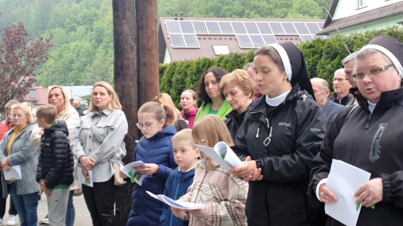 Przy Papieskim Krzyżu rozpoczynamy modlitwę różańcową w obronie Świętości Jana Pawła II i w intencjach, które w sercu niesiemy do Matki Bożej.  Jeszcze uzupełnienie płynów i ruszamy na podbój Jasienia. Na Polanie Stumorgowej kilka namiotów, a dalej na drodze … szlaban!?   Przy kolejnych spotkanych kapliczkach Maryjnych, kolejne dziesiątki różańca. Na Polanie Kutrzyckiej krótki odpoczynek, łyk herbaty i kanapka. Przed nami już tylko zejście do Lubomierza Rzek. Czas jest dobry. Tuż po 9.00 pierwszy telefon od czekających na nas na przełęczy. Tu dołącza do nas całkiem spora grupa. W sumie jest  nas 47 osób z różnych zakątków Polski. Przy Papieżówce dłuższy odpoczynek na śniadanie. Przy obelisku, upamiętniającym w tym miejscu pobyt biskupa krakowskiego Karola Wojtyłę, „najmłodsi” (Wojtek 9 lat i Władysław 71) zapalają znicz,  a my śpiewamy ukochaną Barkę. Dalej, doliną Kamienicy zmierzamy na przełęcz Borek. O dwunastej tę przełęcz zdobywamy i tu modlitwa południowa. Przed Ołtarz Papieski na Polanie Filasowej docieramy o 13.00. Tu ostatni dziesiątek różańca. Na obiad, czyli tradycyjną kwaśnicę udajemy się do schroniska na Turbaczu. Przy okazji mała  czarna. Czas szybko biegnie. Tuż przed 14.00 opuszczamy Turbacz i kierujemy się do Kowańca.  Po drodze na Rusnakowej Polanie przy kaplicy koronka do Miłosierdzia Bożego. Po modlitwie schodzimy do Nowego Targu.  Chociaż jest z górki zmęczenie daje o sobie znać ale każdy mówi damy radę i to jest ten cenny dar. Wytrwanie!!
