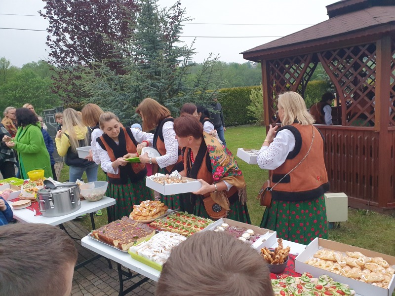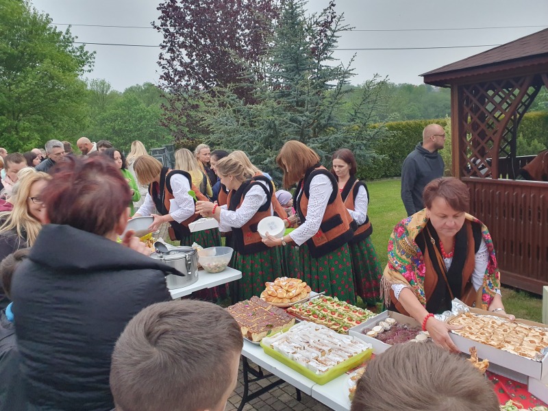 Na zakończenie wszyscy uczestnicy majówki zostali zaproszeni na poczęstunek, jak zawsze różnorodny i bardzo smaczny, przygotowany przez Panie z KGW Tymbark.