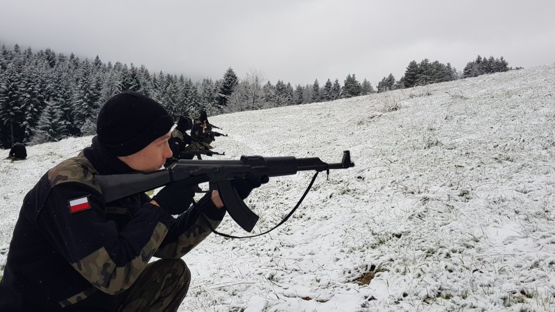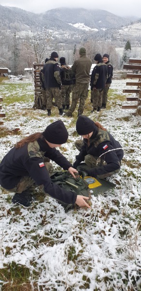 Uczniowie  klas trzecich wojskowych Zespołu Szkół im. Komisji Edukacji Narodowej w Tymbarku uczestniczą w trzydniowych wojskowych zajęciach szkoleniowych w Porębie Wielkiej. Pierwsze opady śniegu  dają doskonałą zaprawę młodzieży w realizacji ciekawych zajęć terenowych.