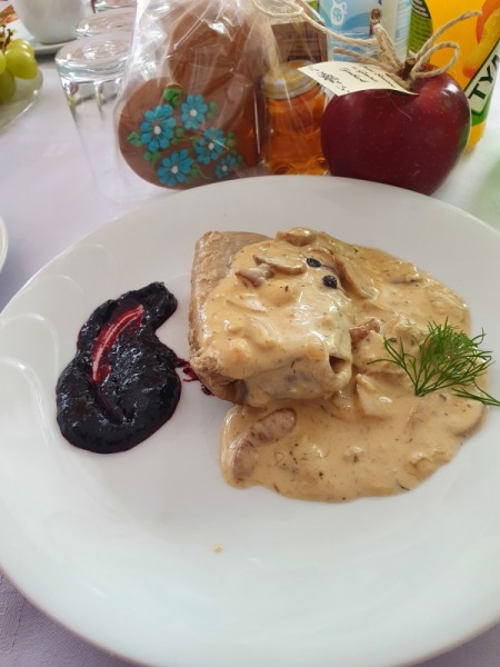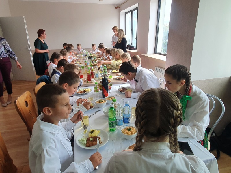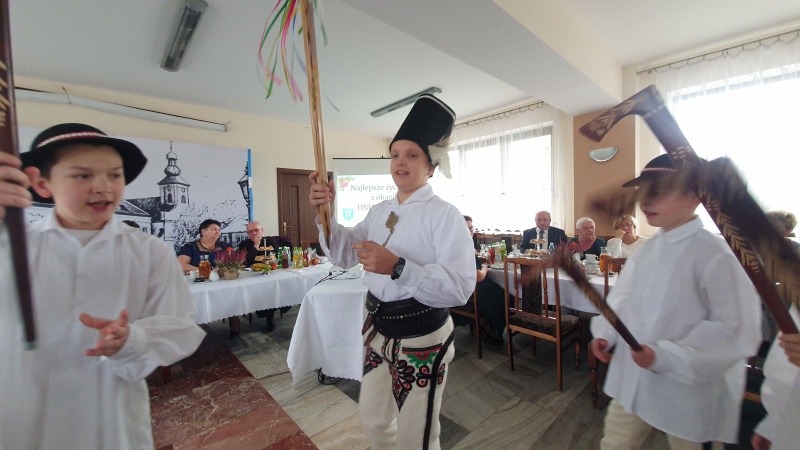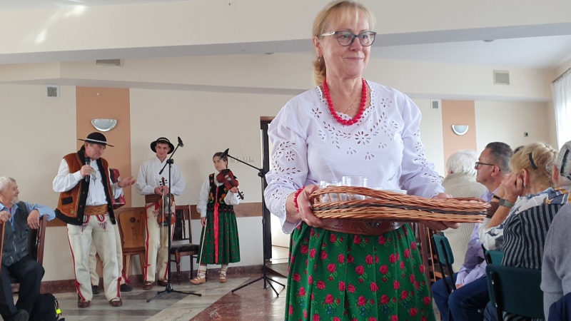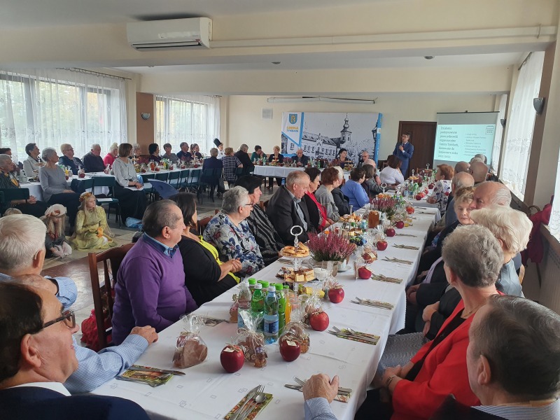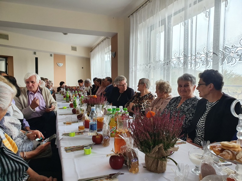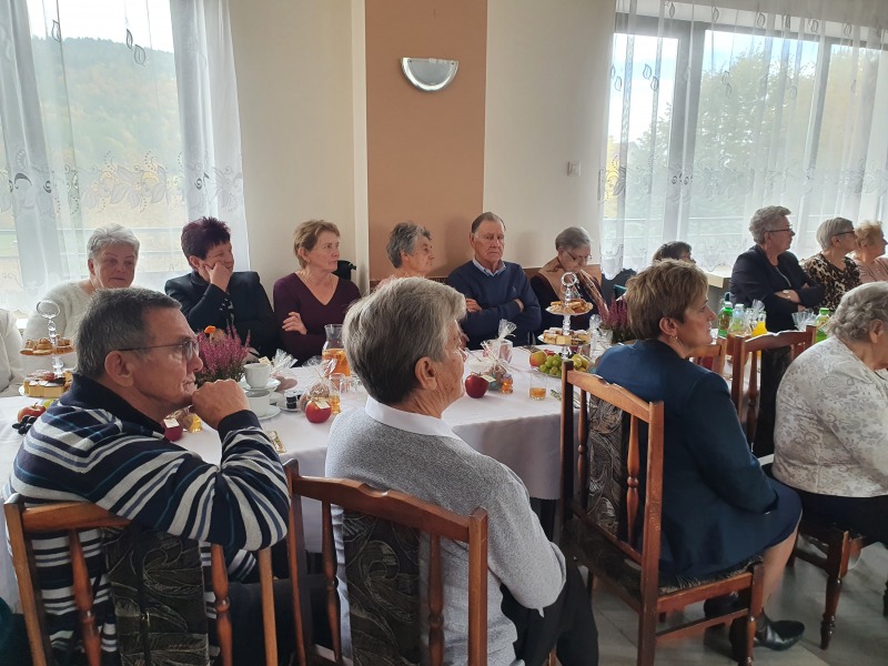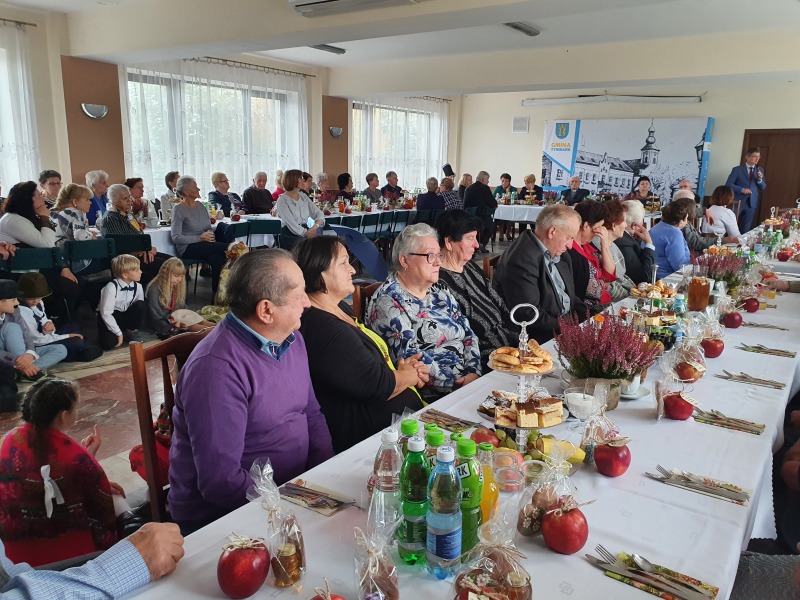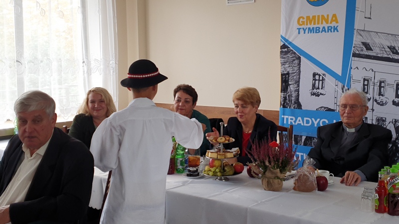 Dla Seniorów niespodziankę kulinarną przygotowały Panie z KGW Tymbark. Było to zwycięskie danie w powiatowym “Pikniku z Produktem Polskim – Bitwa Regionów” . Były to „Tymbarskie Gołąbki” z ziemniaków pod leśną pierzynką oraz ciasto „Leśny mech”. O udziale w Bitwie oraz o potrawie krótko opowiedziała zgromadzonym Pani Agnieszka Cebula – przewodnicząca KGW Tymbark.
