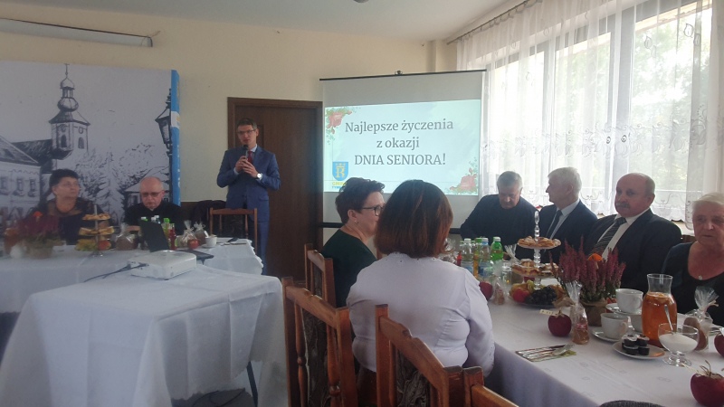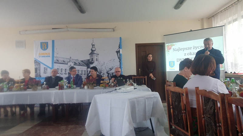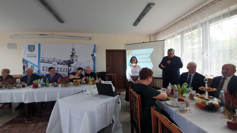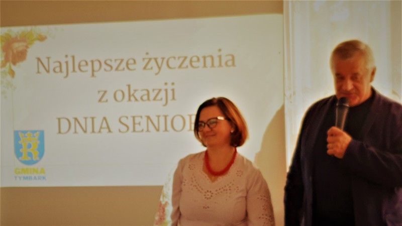 Seniorom życzenia złożył Wójt Gminy Tymbark dr Paweł Ptaszek, który też później przedstawił, w formie prezentacji, jakie działania dla seniorów były i są podejmowane w Gminie Tymbark.