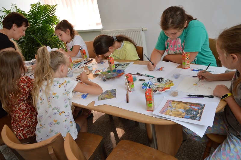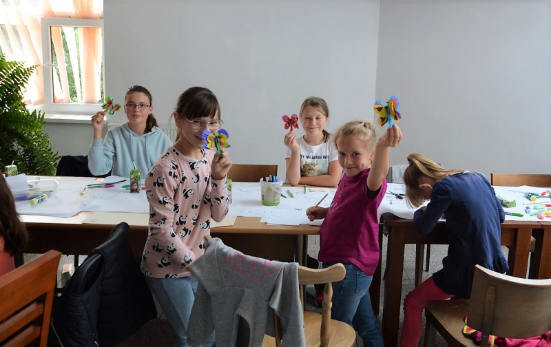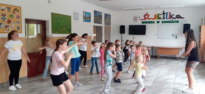 Również w świetlicy przygotowano wiele atrakcji dla najmłodszych, jedną z nich były zajęcia teatralne z teatrzykiem kamishibai. Duża frajdą i ciekawą formą spędzenia wolnego czasu była wycieczka do Ogrodu Doświadczeń im. S. Lema w Krakowie, gdzie zjawiska przyrodnicze i fizyczne można poznać podczas różnych doświadczeń. Liczna grupa dzieci brała udział w zajęciach Zumby, które stanowiły doskonały sposób na połączenie aktywności fizycznej z zabawą. Pod koniec wakacji odbędą się jeszcze warsztaty kulinarne.