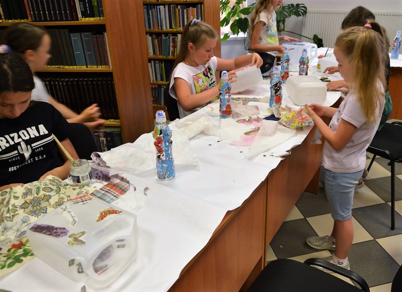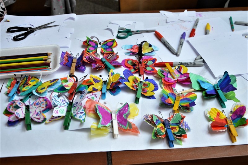W programie znalazły się również zajęcia plastyczne, rozwijające kreatywność, wyobraźnię i twórcze umiejętności. Pod kierunkiem plastyczki, uczestnicy samodzielnie wykonywali prace przy wykorzystaniu ekologicznych materiałów. W efekcie zajęć powstawały: torebki z recyklingu, obrazki wykonane techniką metaloplastyki oraz dekoracyjne motyle.