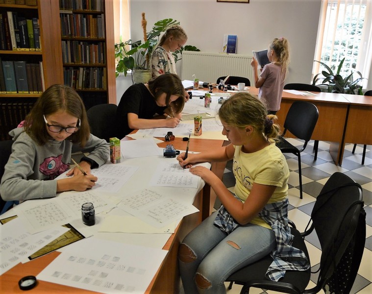 Podczas zajęć z kaligrafii i iluminatorstwa wytrwali skrybowie doskonalili swoje zdolności manualne. Poznali najdawniejsze techniki zdobienia ksiąg tworząc portrety aniołów oraz malując nietoperze według średniowiecznych wzorów, uczyły się ucierać specjalne farby oraz opanowały technikę złocenia. Nie lada wyzwaniem była nauka kaligrafii alfabetu ukraińskiego.