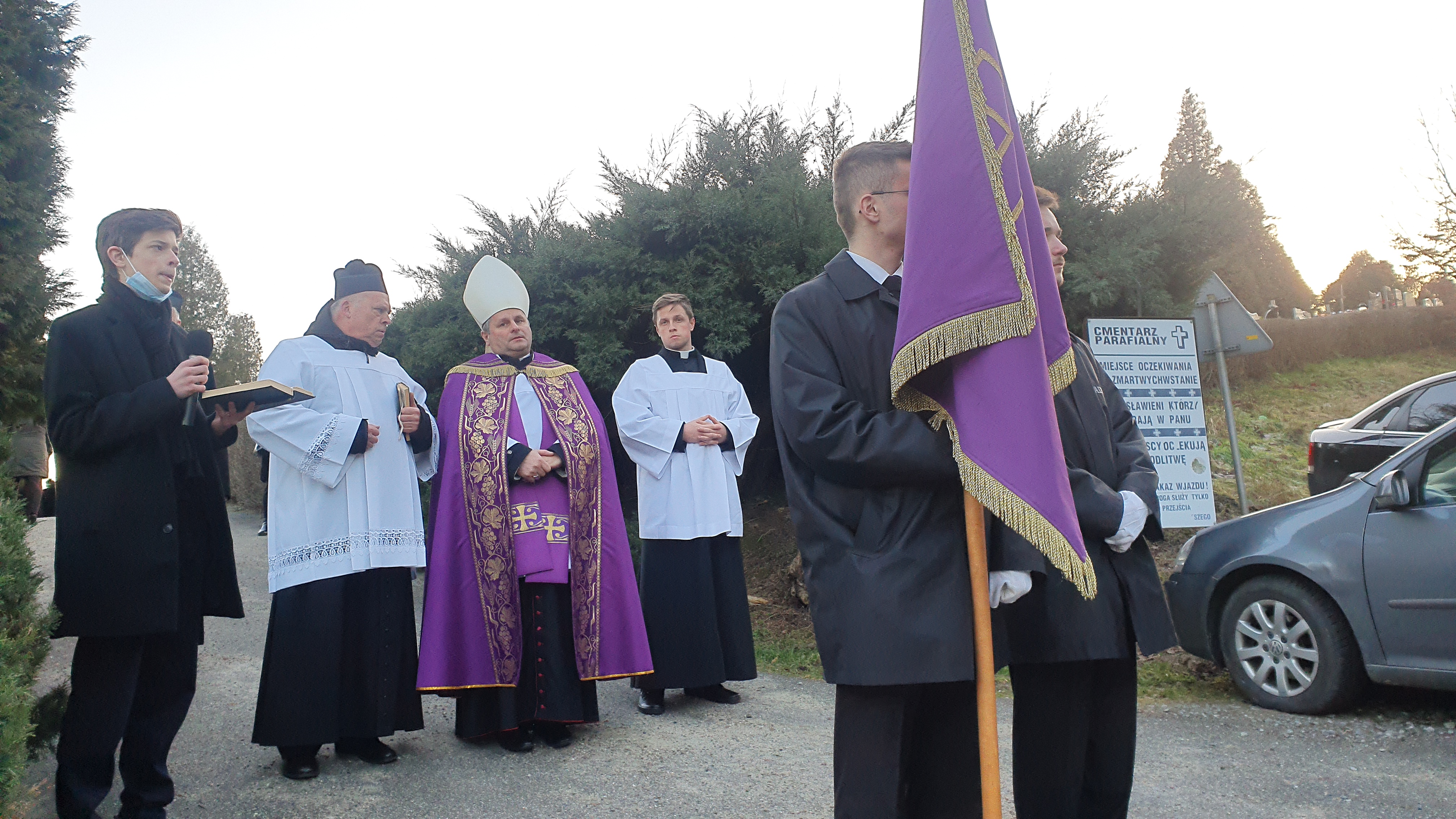Kondukt pogrzebowy odprowadził Ciało Zmarłego księdza Andrzeja na miejscowy cmentarz, gdzie zostało pochowane w rodzinnym grobowcu.