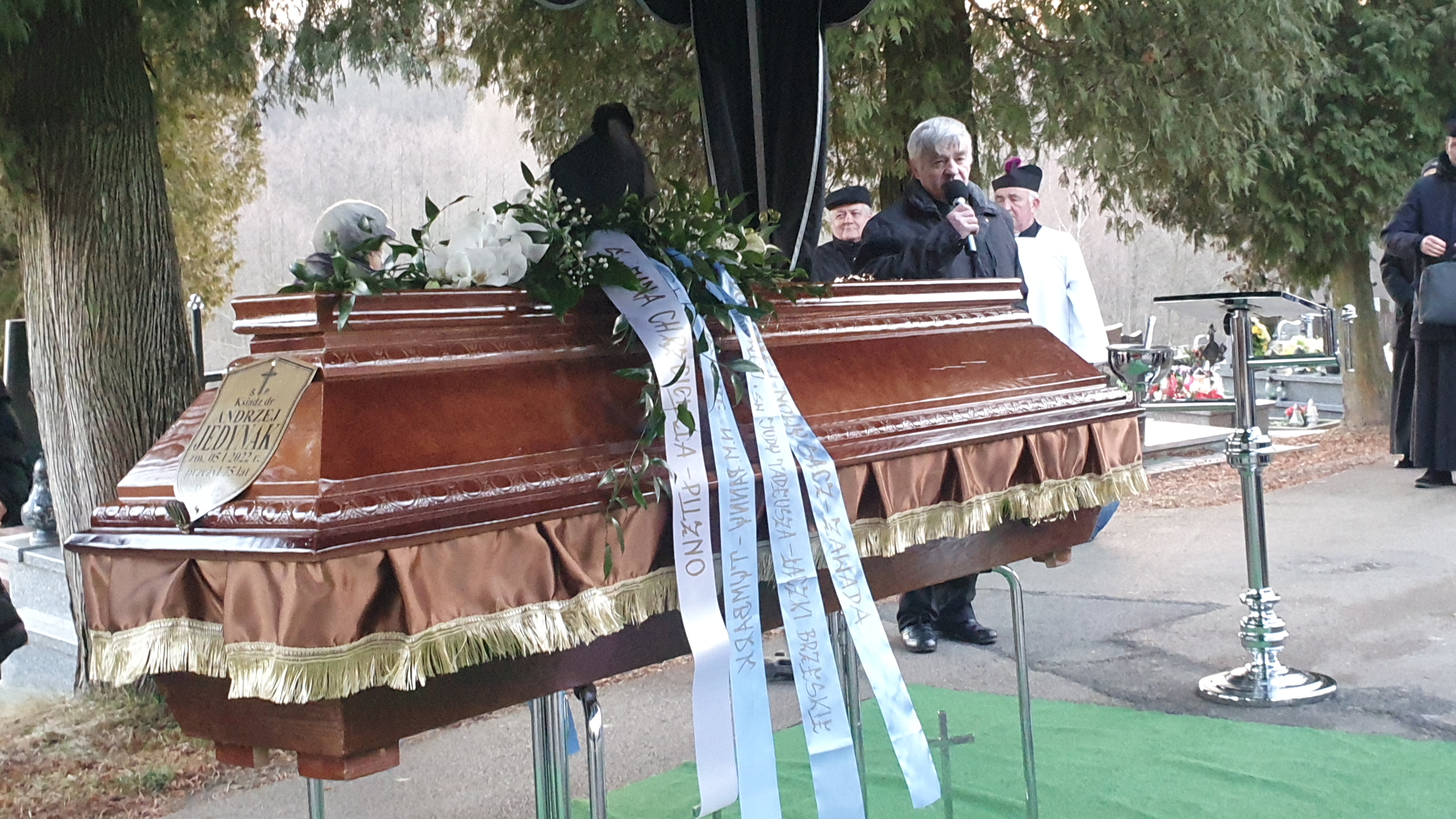 Przy trumnie zmarłego Księdza Andrzeja zebrała się Jego rodzina, przyjaciele oraz liczne poczty sztandarowe organizacji, stowarzyszeń, z którymi Ksiądz Andrzej współpracował w ciągu swojego bogatego życia kapłańskiego, przewodnika górskiego i turystycznego, pielgrzyma, działacza Solidarności, kronikarza, społecznika oraz przyjaciela.