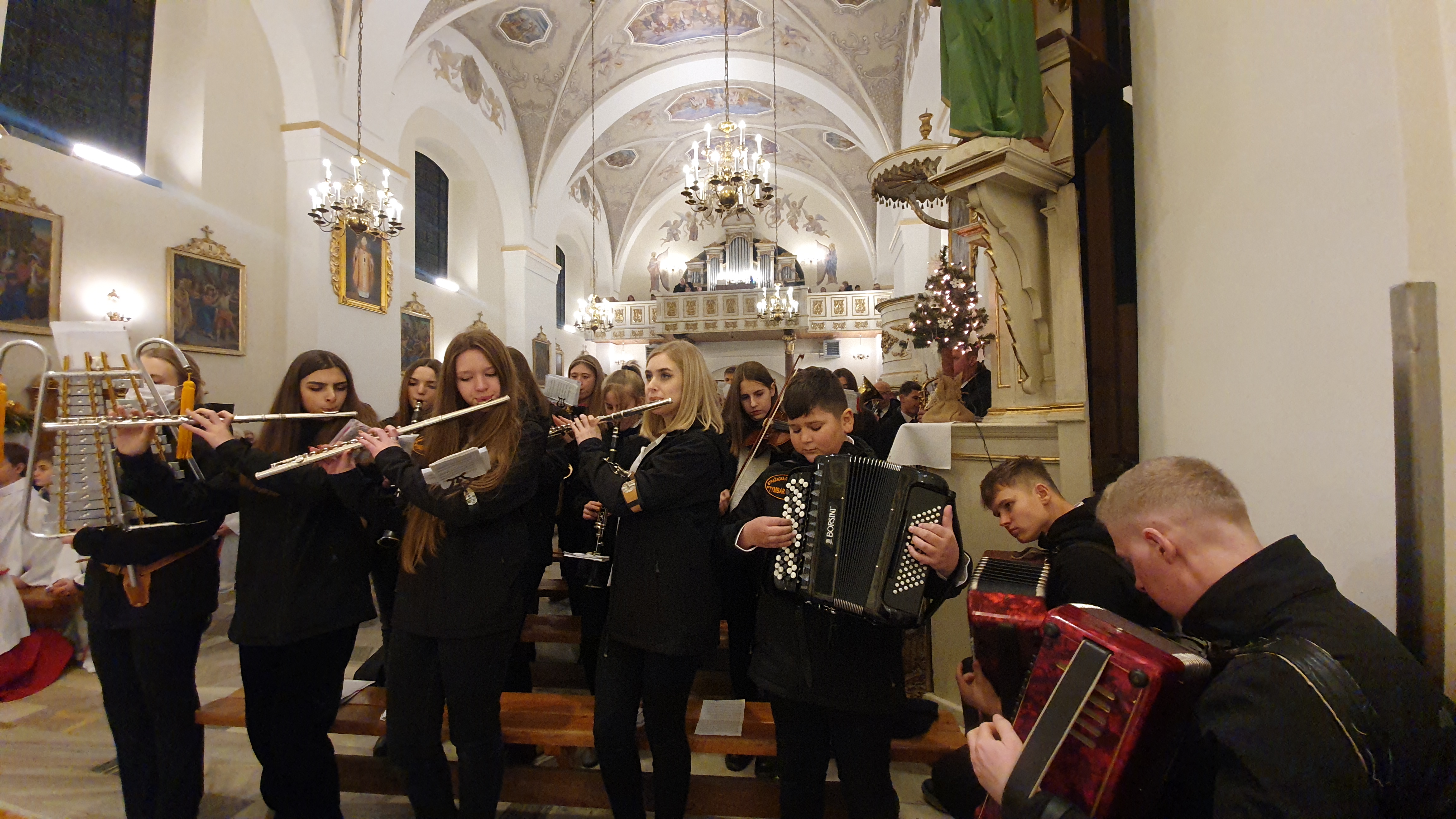 Uczniowie tymbarskiej Szkoły Muzycznej śpiewają kolędy i pastorałki