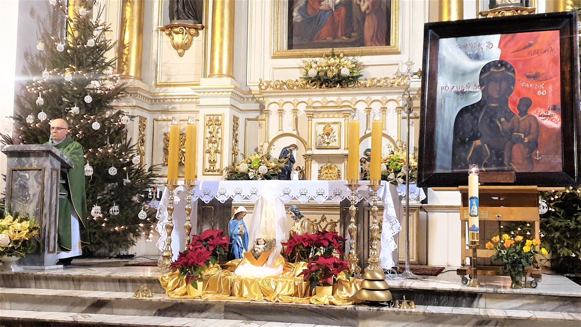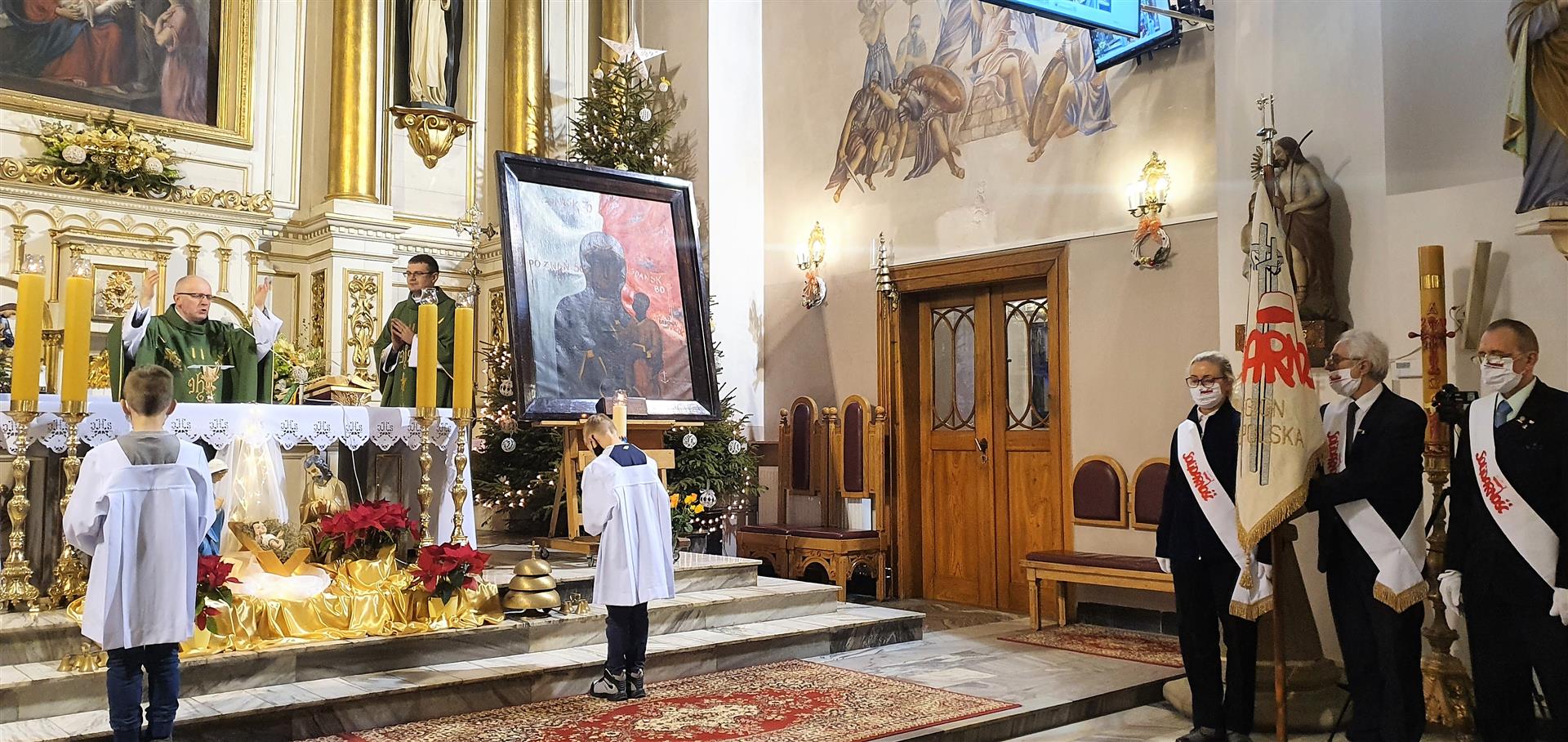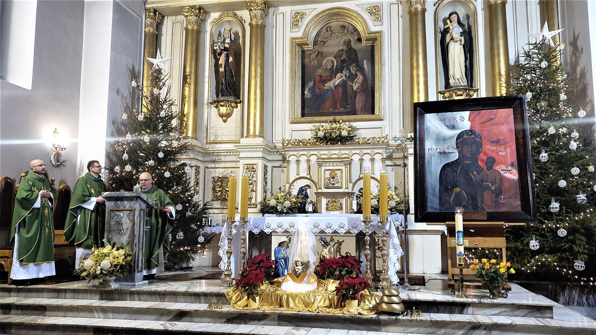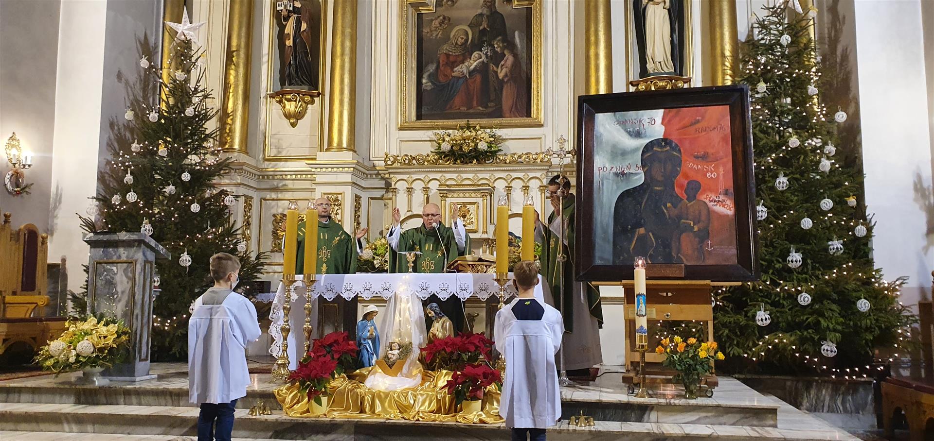 Obraz, relikwie oraz krzyż (przywieziony przez delegację małopolskiej Solidarności) zostały wniesione do kościoła przez przedstawicieli parafii. Oprawę muzyczną Eucharystii zapewnił zespół Laus Deo, który po zakończeniu dał krótki koncert kolędowy.