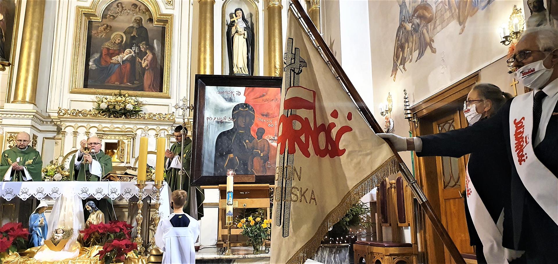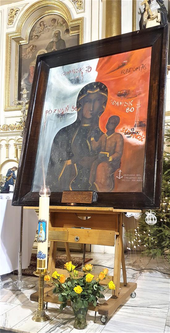 Dzisiaj na Mszy św. o godz.17 do tymbarskiego kościoła został wprowadzony obraz Matki Bożej Robotników. Peregrynacja obrazu Matki Bożej Robotników Solidarności jest tradycją NSZZ „Solidarność”. Obraz i jego peregrynacja związane są z Ogólnopolską Pielgrzymką Ludzi Pracy na Jasną Górę, która odbywa się co roku w trzecią sobotę i niedzielę września. Po raz pierwszy została zorganizowana w 1983 roku przez ks. Jerzego Popiełuszkę dla robotników Huty Warszawa. Rok później, pielgrzymi przybyli z wielu regionów Polski i modlili się o dobrą i godną pracę oraz o godne traktowanie pracowników. Każdego roku podczas Mszy św. na Jasnej Górze ikonę przejmuje region, który będzie organizatorem Pielgrzymki Ludzi Pracy w kolejnym roku .