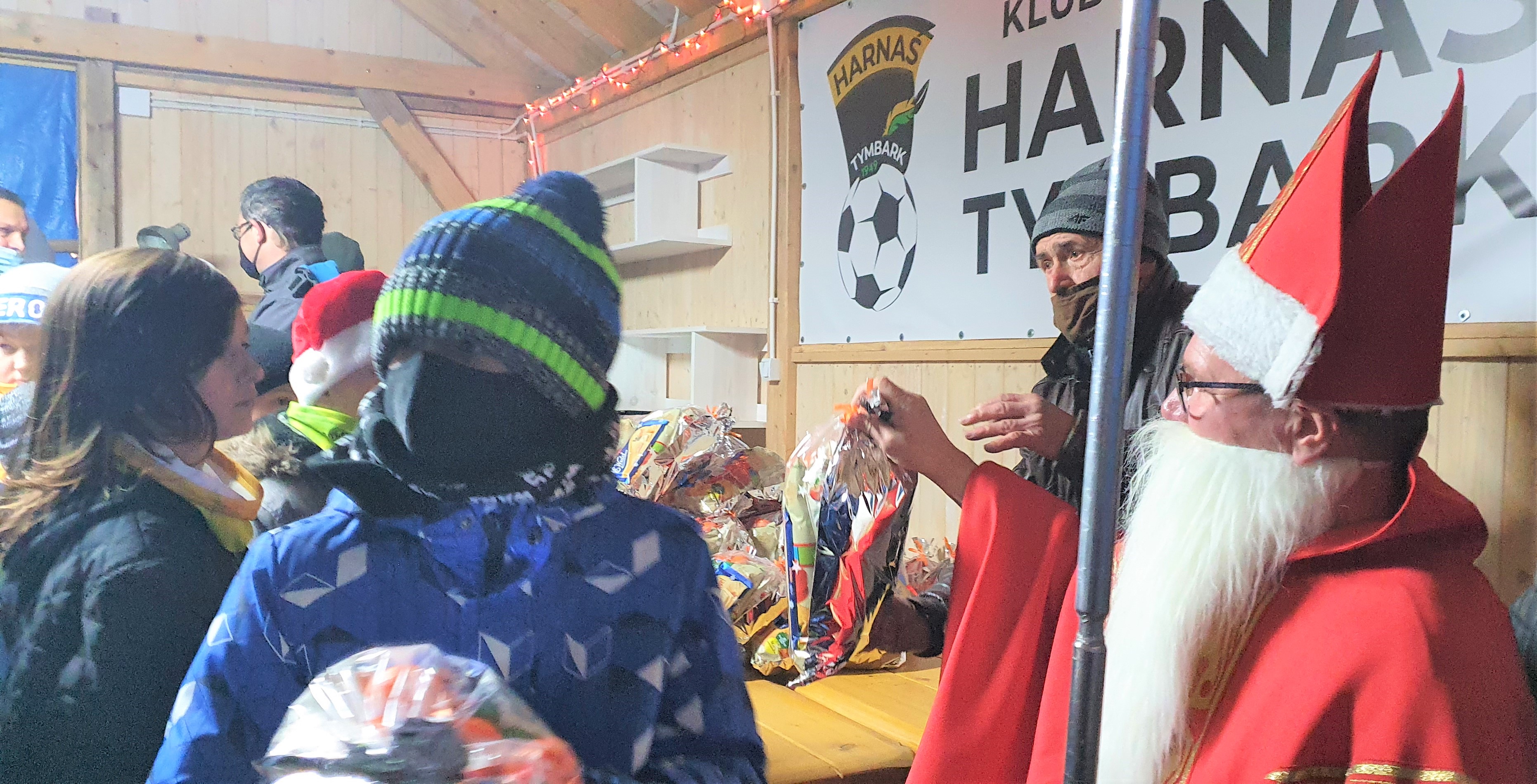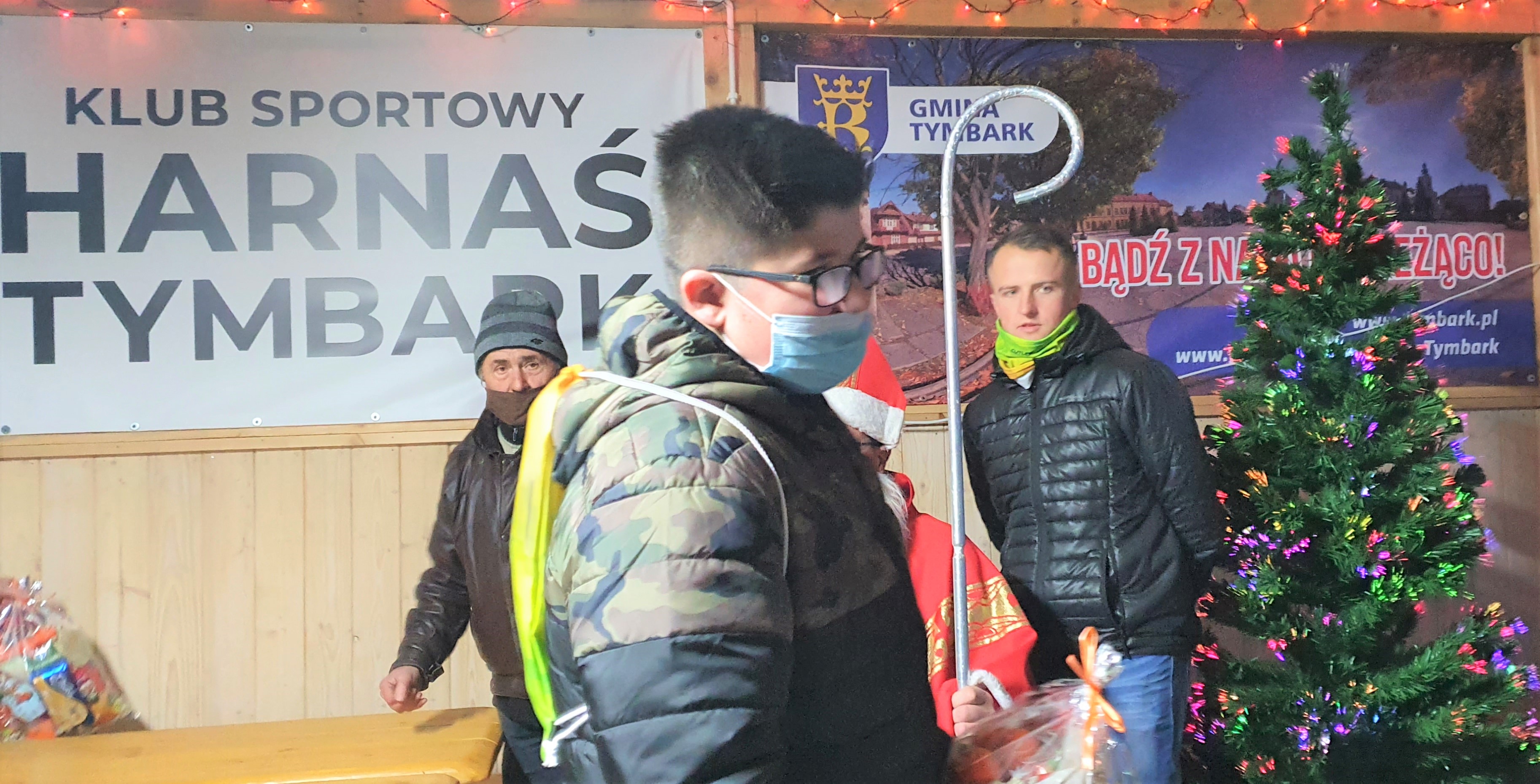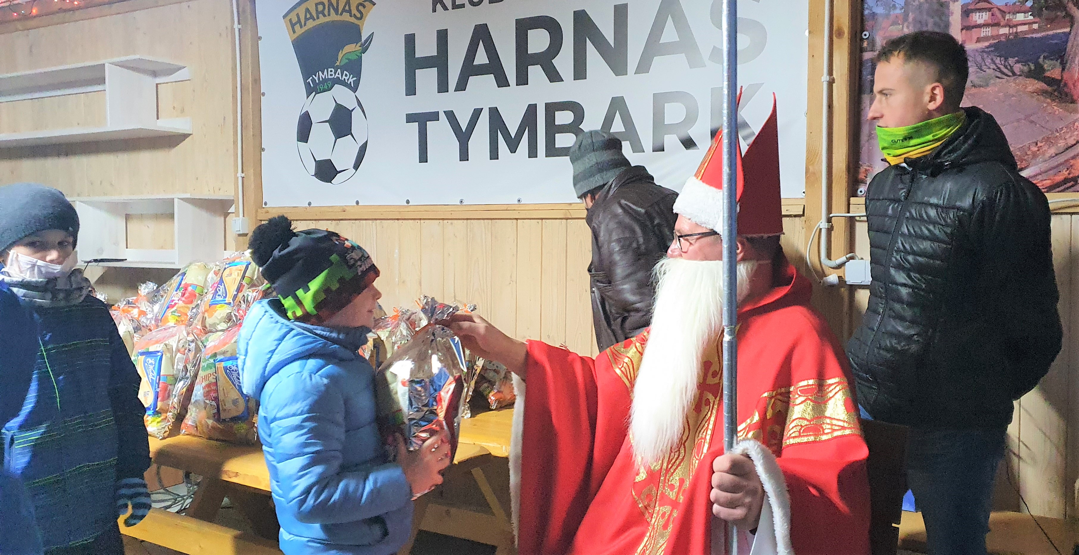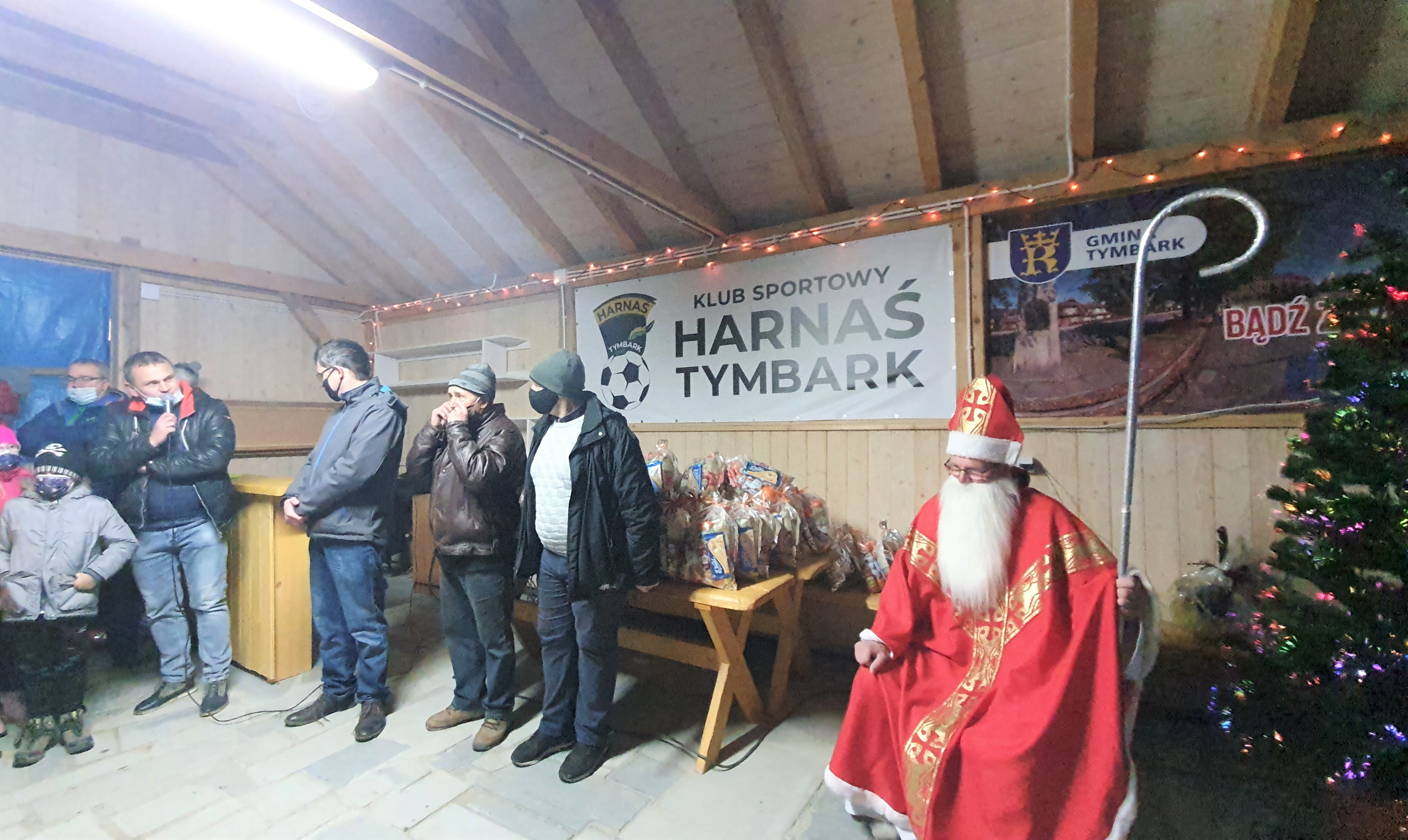 Już o zmierzchu na boisko sportowe im.Sipaka zajechał św,Mikołaj, gdzie został bardzo żywiołowo przywitany przez dzieci uczęszczające do szkółki piłkarskiej HARNAŚ. W nowowybudowanej altance czekali też szefowie KS Harnaś, trener, wójt Gminy Tymbark Paweł Ptaszek, sołtys wsi Tymbark Andrzej Ligas. Po kilku zdaniach do dzieci od Franciszka Mrózka- wiceprezesa KS Harnaś, Wójta Pawła Ptaszka przyszedł oczekiwany moment rozdawania paczek przez św.Mikołaja. Upominków wystarczyło dla wszystkich przybyłych dziewczynek i chłopców, ale też była niespodzianka dla Wójta, piszącej te słowa, ale i też coś się znalazło dla… świętego Mikołaja. .Na zakończenie życzenia noworoczne złożył Marian Jaroszyński, prowadzący tą miłą uroczystość.