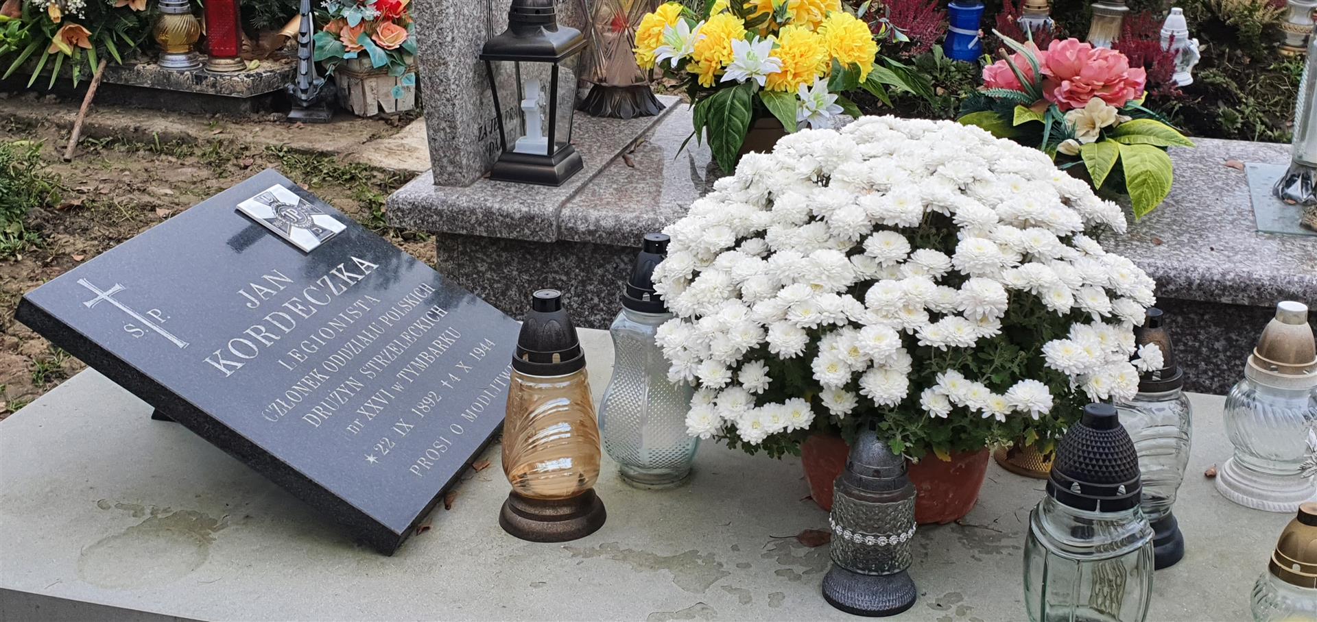 Grób ppor. Jana Kordeczki, który w roku 1914 z grupą strzelców (drużyniaków) z Tymbarku wyruszył do Krakowskich Oleandrów aby walczyć o Niepodległość Ojczyzny. W szeregi Legionów Piłsudskiego wstąpił 4 września 1914 roku, gdzie przydzielony został do 3 pp. Legionów Polskich. Od lutego 1915 roku służył w Komendzie Sztabowej- w plutonie sztabowym Komendy II Brygady, przydzielonym następnie do 3-go pp. Legionów Polskich.