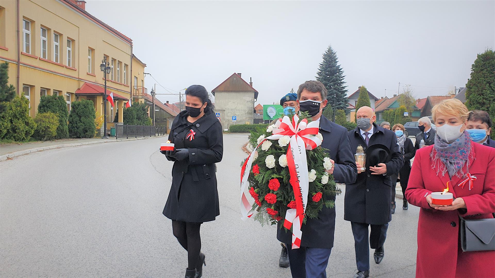 Narodowe Święto Niepodległości 2020 z powodu pandemii obchodzono w Tymbarku, podobnie jak w innych miejscach, w zmienionej formie. Mimo to, a nawet można powiedzieć, że szczególnie z tego powodu!, nie zmienił się najważniejszy element obchodów narodowego święta czyli sprawowanie Eucharystii za Ojczyznę. W tym roku Mszy św.koncelebrowanej, wraz z księżmi kanonikiem Franciszkiem Malarzem oraz prałatem Edwardem Nylcem, przewodniczył ksiądz proboszcz dr Jan Banach, który we wstępie do Mszy św. oraz na jej zakończenie podkreślił jak ważna jest modlitwa za Ojczyznę, za powierzenie Bogu wszystkich trudnych spraw. Okolicznościowe kazanie wygłosił wikariusz tymbarskiej parafii ksiądz Tomasz Wroński.