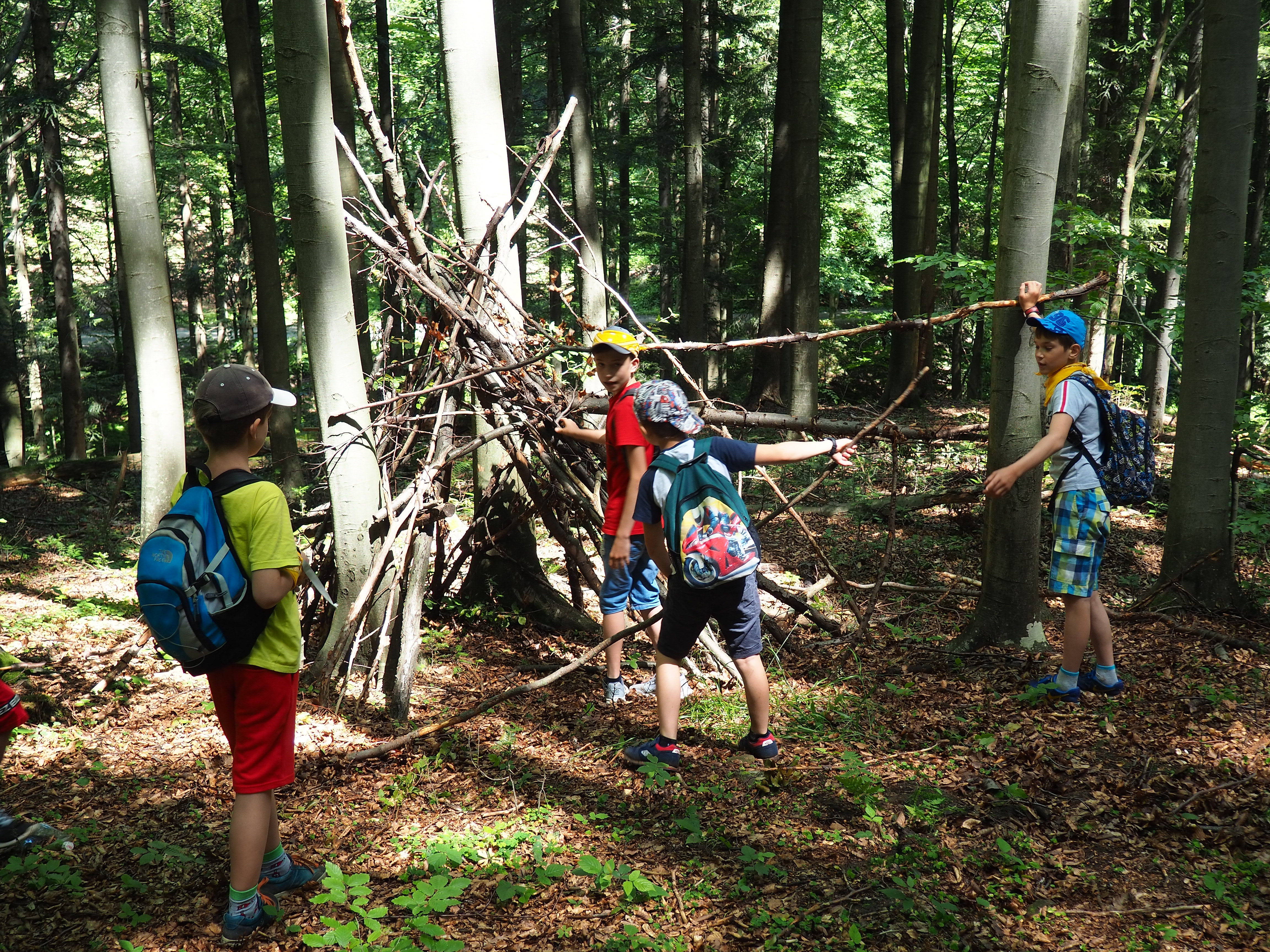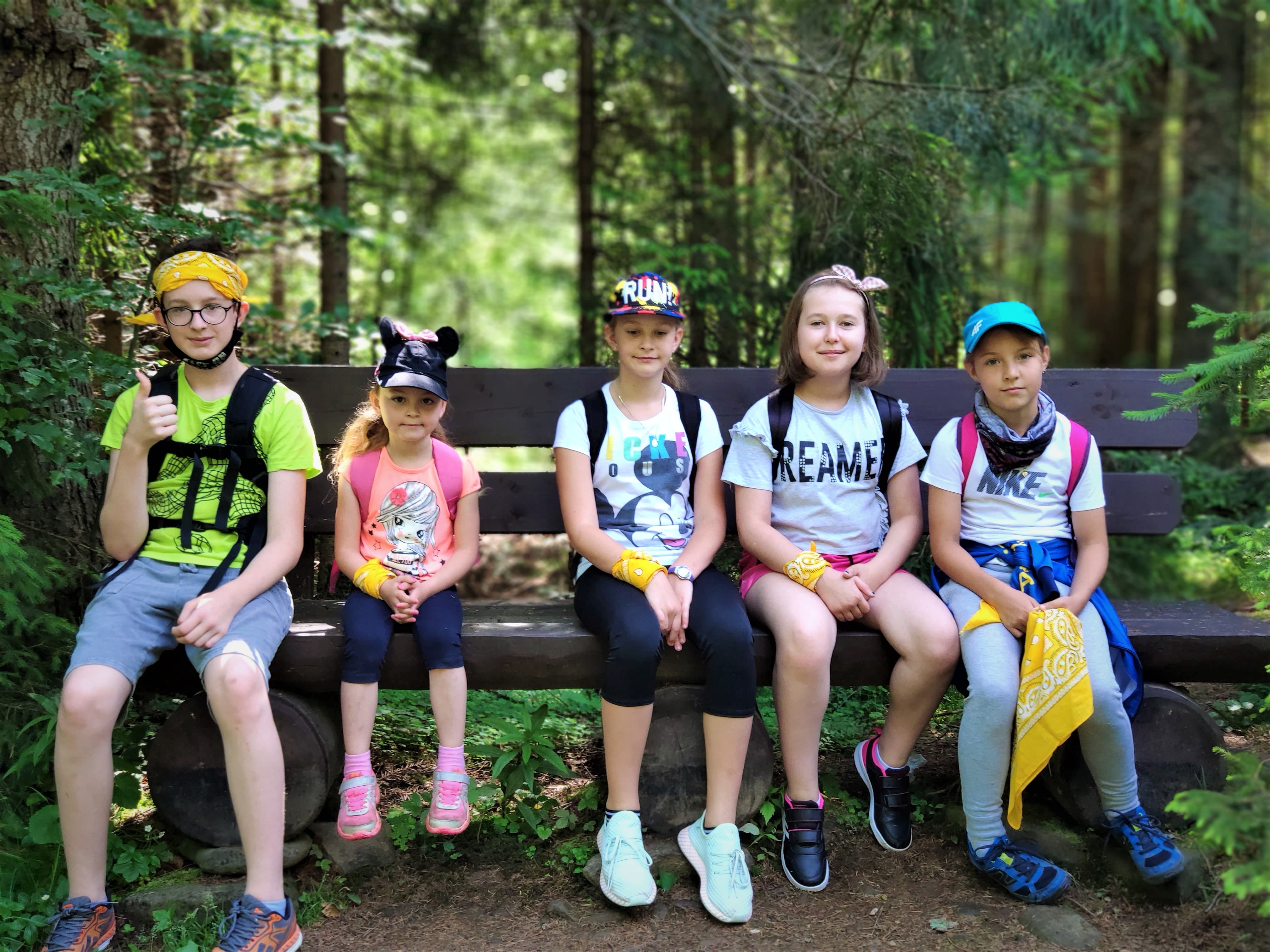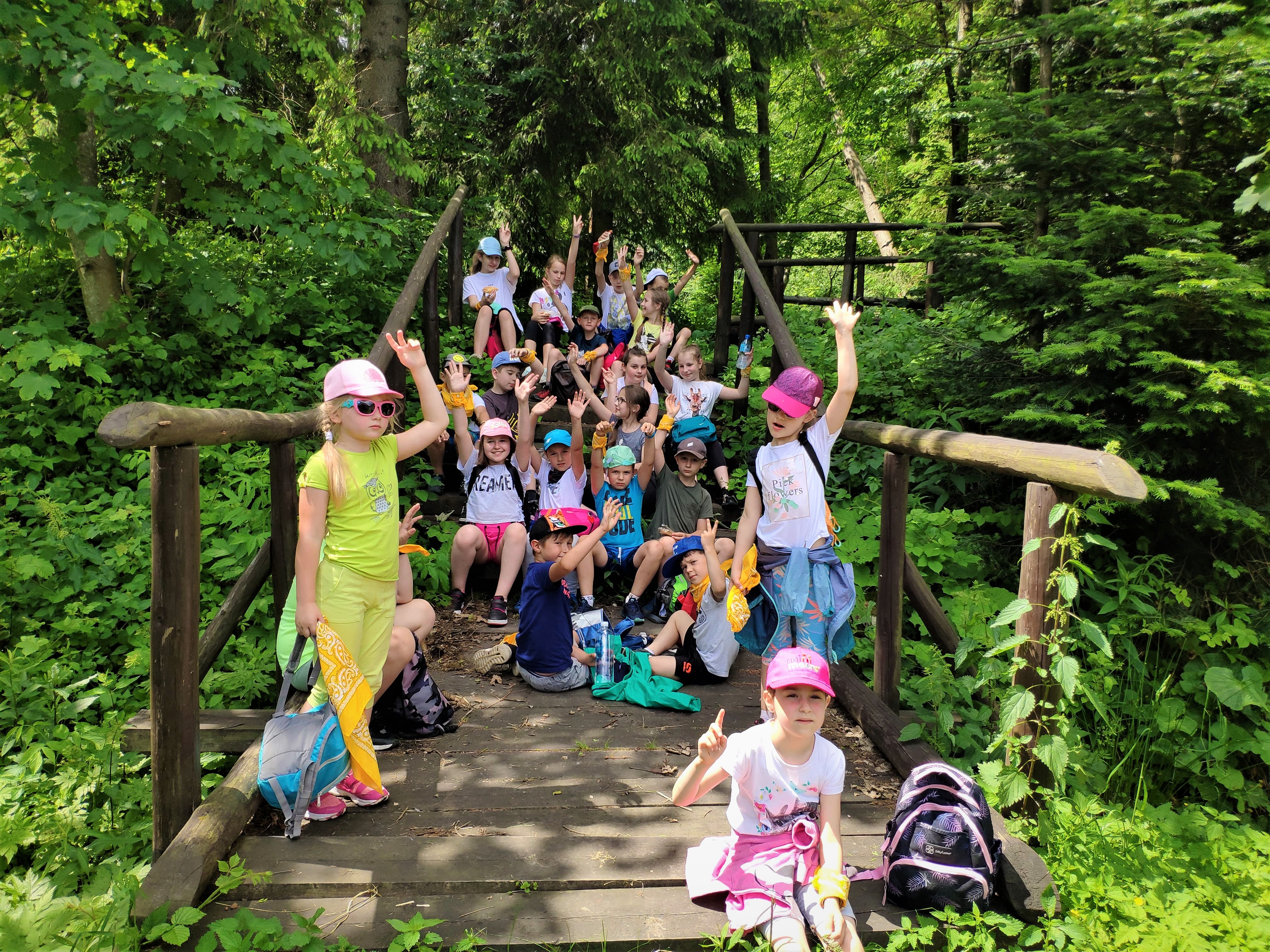Pierwszego dnia naszej przygody odwiedziliśmy dolinę Gorcowego Potoku w pobliżu miejscowości Lubomierz. Poznaliśmy faunę i florę gorczańską i rozpaliliśmy ogień na polanie Trusiówka. Tego dnia musieliśmy trochę skrócić pobyt w lesie, ponieważ prognozy zapowiadały poważną burzę, która na szczęście ominęła nas, pokazując się jedynie z daleka. Kolejny dzień również był bardzo aktywny. Spacerowaliśmy doliną Roztoki w Beskidzie Sądeckim, która znana jest z powieści Marii Kownackiej „Rogaś w dolinie Roztoki”. Poznaliśmy zachowanie żmij i zwyczaje innych leśnych zwierząt, a na zakończenie chętni skosztowali wody „Zuber” o dziwnym smaku zgniłych jaj. Dzień trzeci był trochę inny niż nasze ambitne plany. Mieliśmy odwiedzić obserwatorium astronomiczne, ale z powodu epidemii nie było to możliwe. Wybraliśmy się więc na trochę dłuższy wyjazd i najpierw wdrapaliśmy się na górę Wdżar, która została zbudowana z zastygłej lawy. Poznaliśmy kilka ciekawostek dotyczących budowy geologicznej gór i anomalii magnetycznych. Potem krótka wizyta u prawdziwego bacy i piknik nad Jeziorem Czorsztyńskim. Czwartego dnia wzięliśmy udział w zajęciach plastycznych zorganizowanych w Sadku. Zabawa dotyczyła pobliskiej góry Kostrza i jej tajemnic związanych