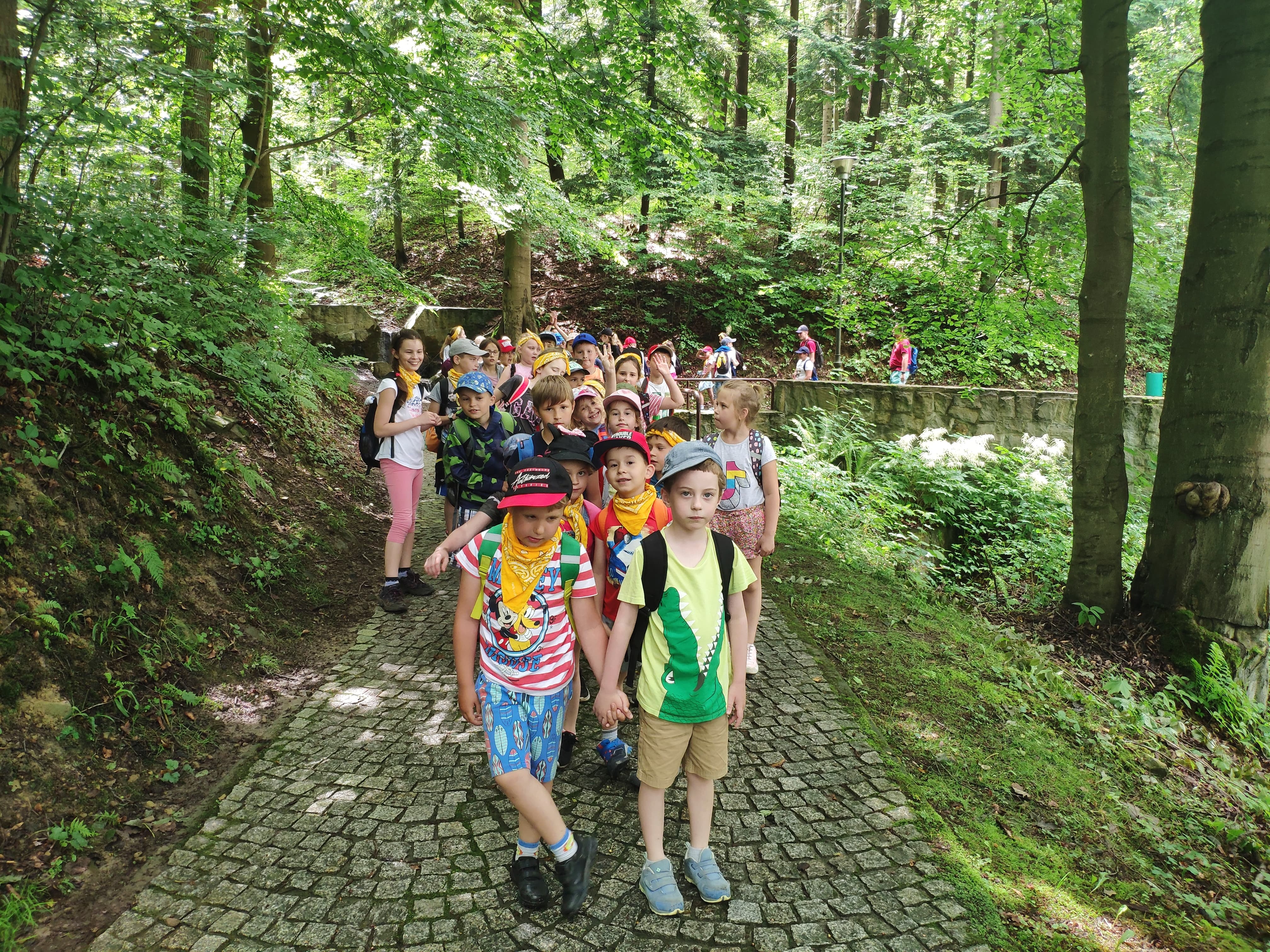 z ciekawą przyrodą oraz budową przypominającą wielkiego wieloryba. Każdy uczestnik zrobił własny obraz z masy papierowej i wyprodukował małe mydełko, oczywiście w kształcie… wieloryba! 😊.  Piątego dnia odwiedziliśmy naszą ulubioną Krynicę – Zdrój. Góra Parkowa, nowe łazienki i pijalnia główna, to najważniejsze punkty zwiedzania. Oczywiście był czas na zakup pamiątek i „tradycyjną” pizzę. Na zakończenie w sobotę wybraliśmy się do zamku w Dobczycach. Przy okazji zwiedziliśmy miejscowy skansen budownictwa ludowego i wdrapaliśmy się na ogromny kamień – piaskowcowy ostaniec związany z legendą o klasztorze w Szczyrzycu. Każdy uczestnik otrzymał też skromny upominek.